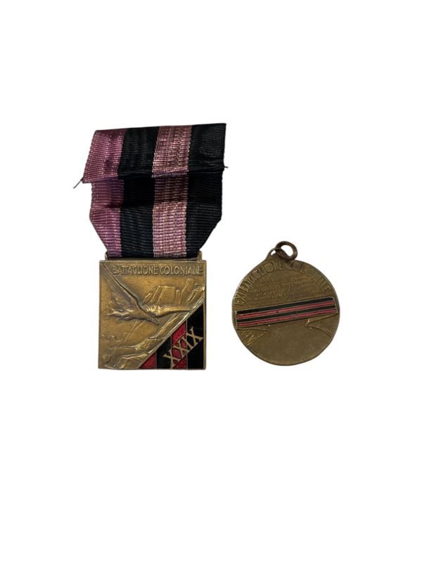 Lotto di due medaglie LXI e XXIX Battaglione Coloniale
