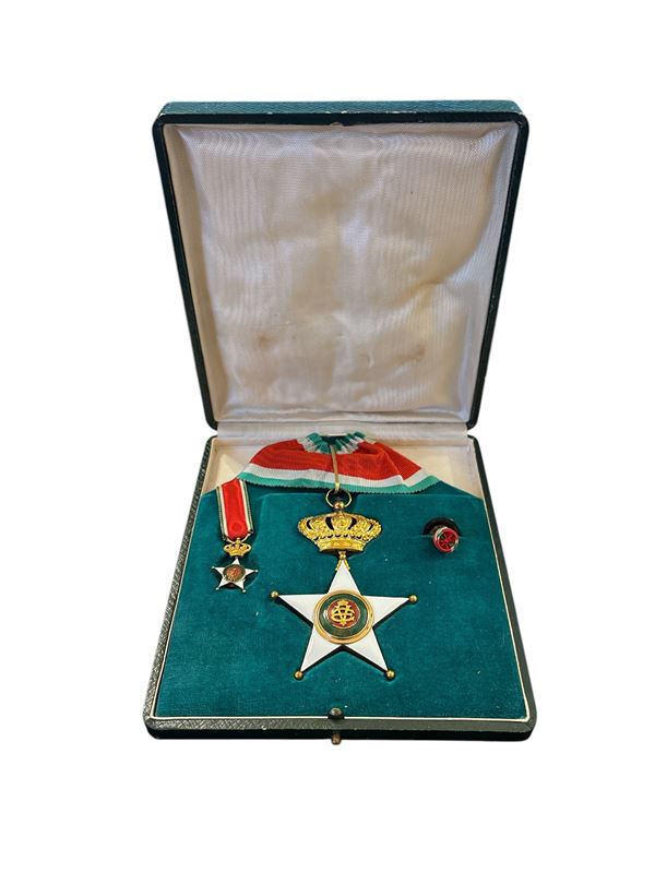 Con mignon e bottone in confezione originale. Iniziali del Re coronate al centro della stella.