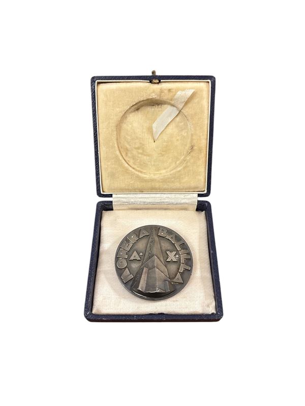 Medaglia coniata in occasione del decimo anniversario della fondazione dell'Opera Balilla. In bronzo. In confezione originale.