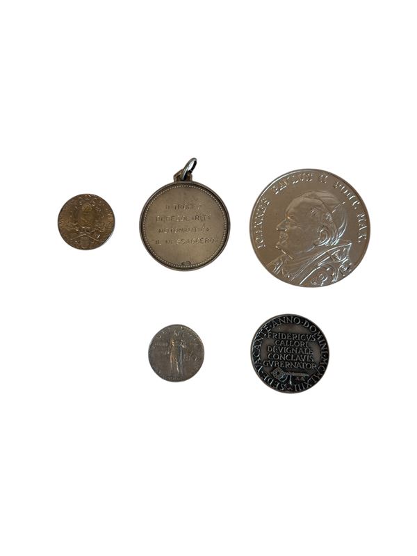 Composto da: Medaglia Sede Vacante - 1963 - Governatore del Conclave Monsignor Federico Callori di Vgnale; Città del Vaticano - 10 L. - 1951; Città del Vaticano - 50 cent. - 1939; Medaglia Giovanni Paolo II sale al Soglio Pontificio - 1978; Medaglia "Il trofeo di regolarità motonautica" Il Messaggero.