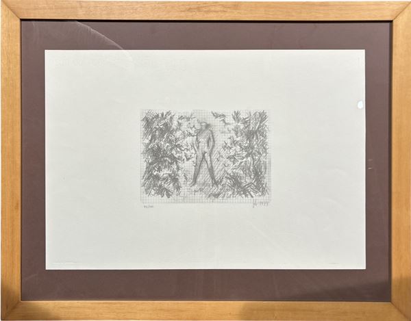 "Figura", es. n. 95/100, 34 x 50 cm, 1973, firma indistinta in basso a destra. In cornice.