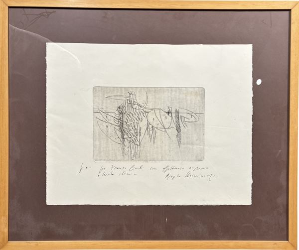 "Sinfonia per una caduta", es. n. 18/25, 1971, 51 x 36 cm, firma indistinta in basso a destra. In cornice.