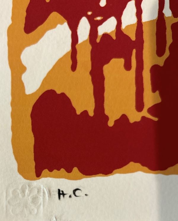 Firma in basso a destra; timbro a secco della stamperia e esemplare "H. C." in basso sinistra.
