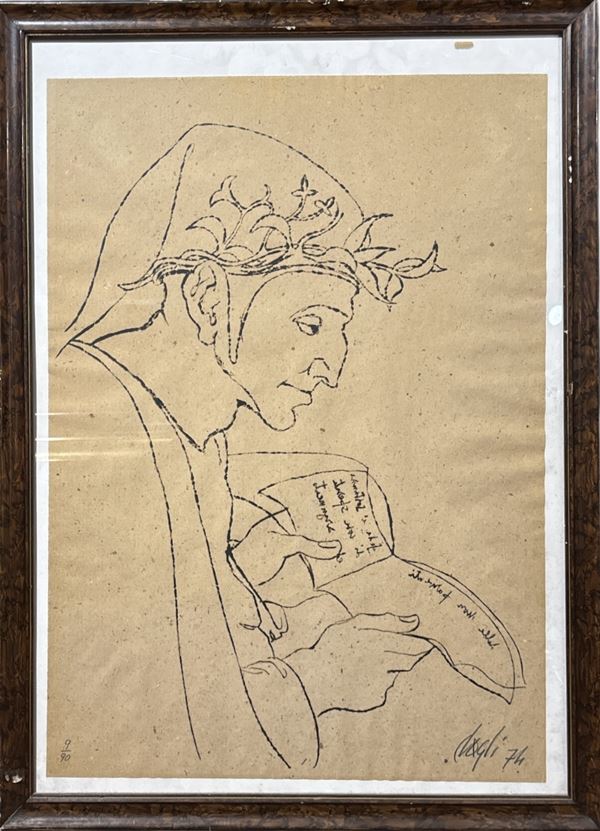 Corrado Cagli, "Dante", 1974, litografia, 52 x 36 cm, es. n. 9/90, firmata. In cornice.