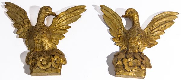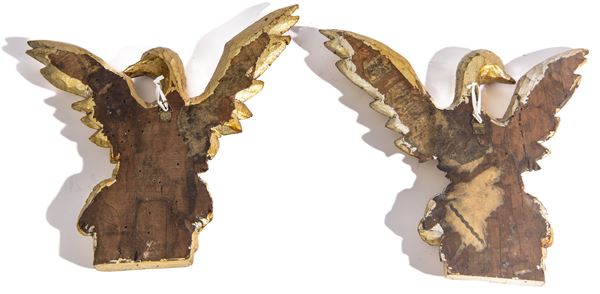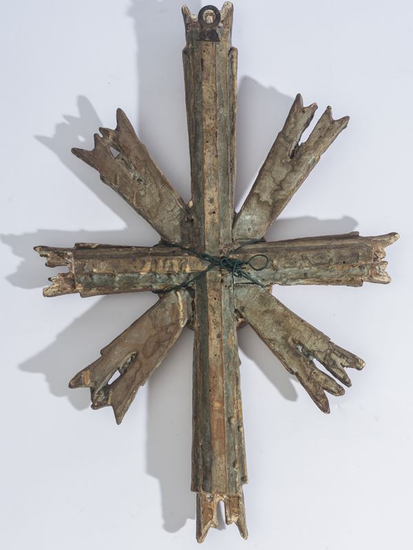 Raggiera: 38 x 26 cm; fregi a foggia di volatile: 23 x 26 cm.