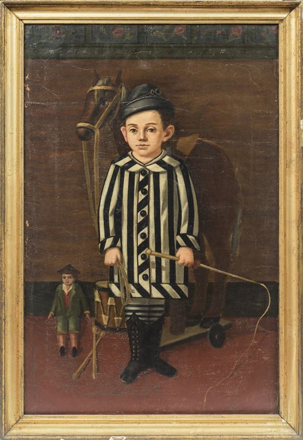 ritratto di fanciullo con giocattoli, Pittore anonimo - XIX secolo