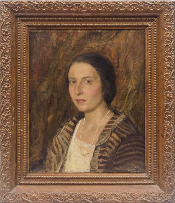 Ritratto femminile con collana di perle, Scuola europea, inizio XX secolo