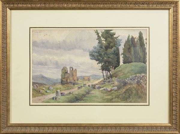 Strada con ruderi, Scuola romana - fine del XIX secolo