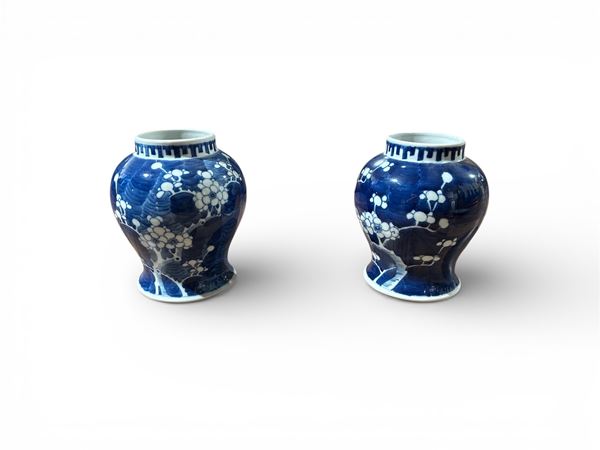 composto da: una coppia di vasi in ceramica in smalto bianco e blu ( 16 x 13 cm); una potiche (19 x 16 cm); un piatto (30 cm). Mancanze e difetti