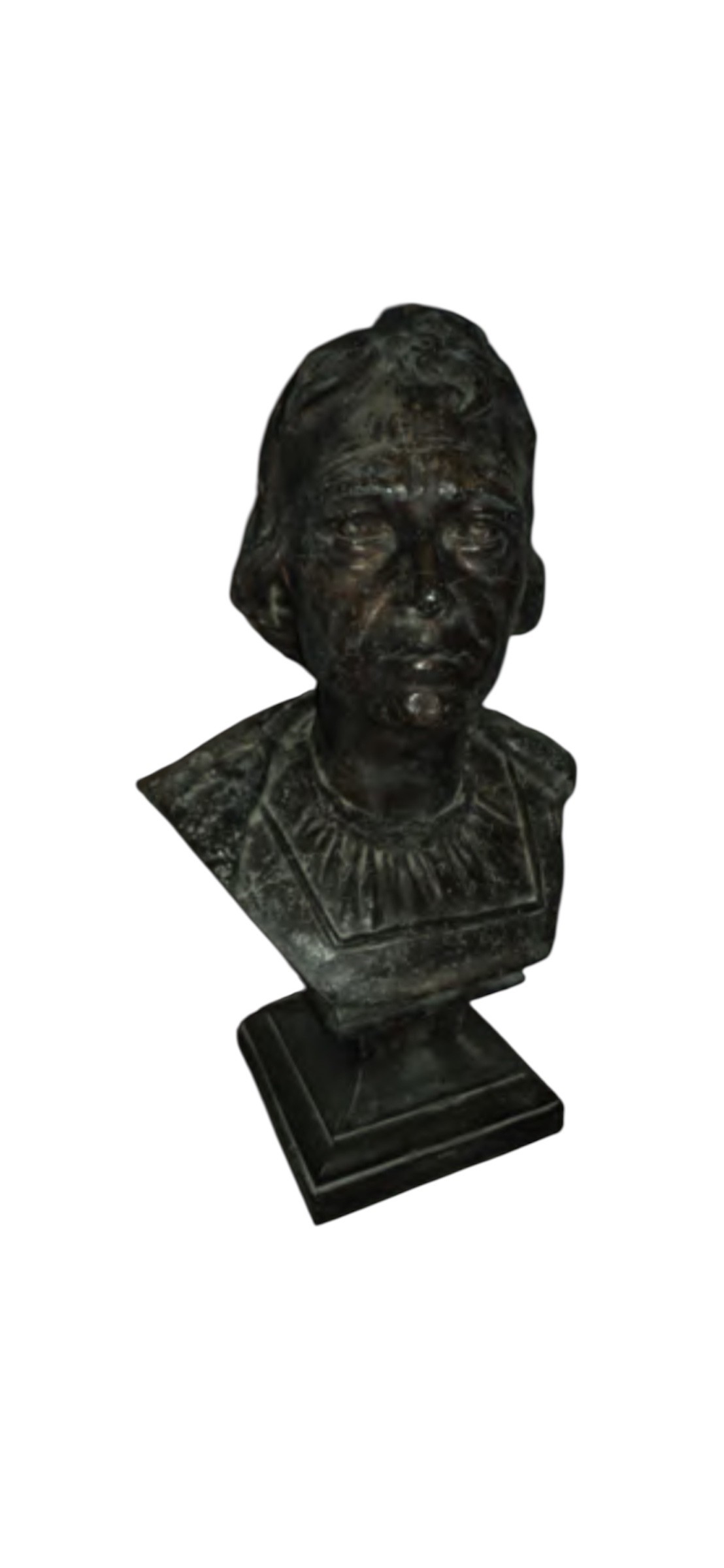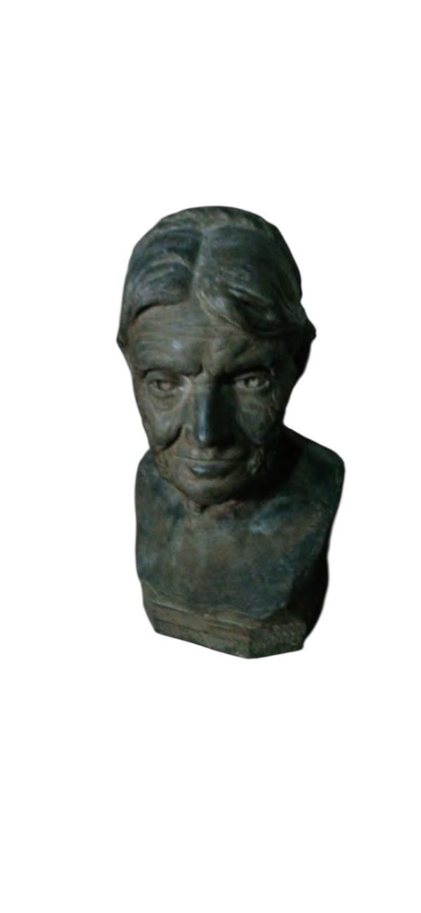 Mezzobusto in terracotta raffigurante anziana (40 x 23 cm); mezzobusto in antimonio raffigurante figura maschile (47 x 30 cm)