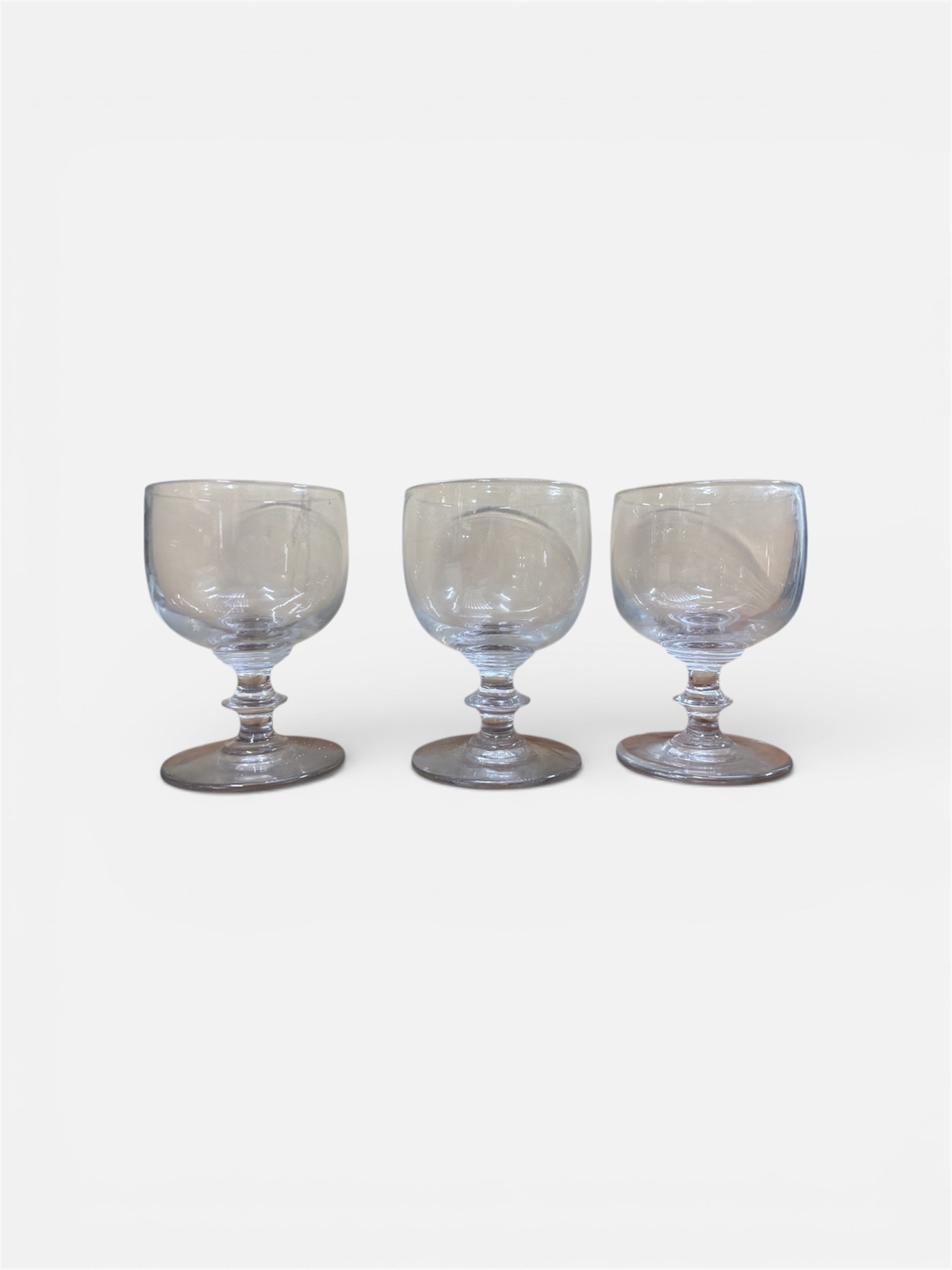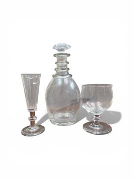 Composto da 12 flutes, 12 calici da rosso, 12 calici da bianco, 20 bicchierini di varie dimensioni e bottiglie con tappo