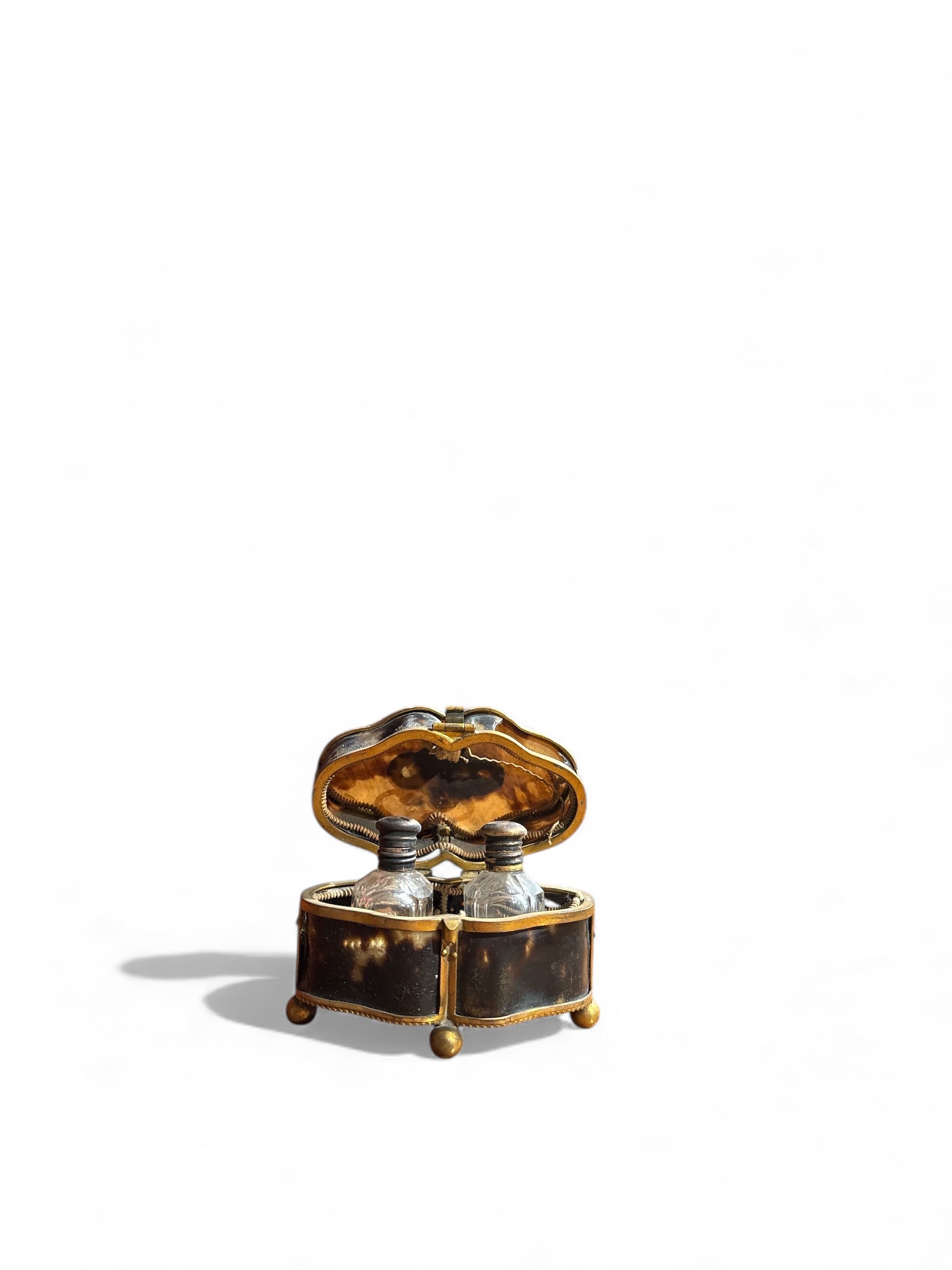 contenente due piccoli flaconi in vetro portaprofumo. Difetti