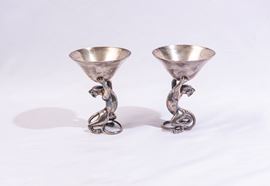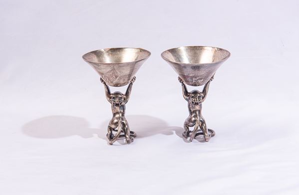 Coppia di coppe in metallo argentato, Italia, inizio XX secolo