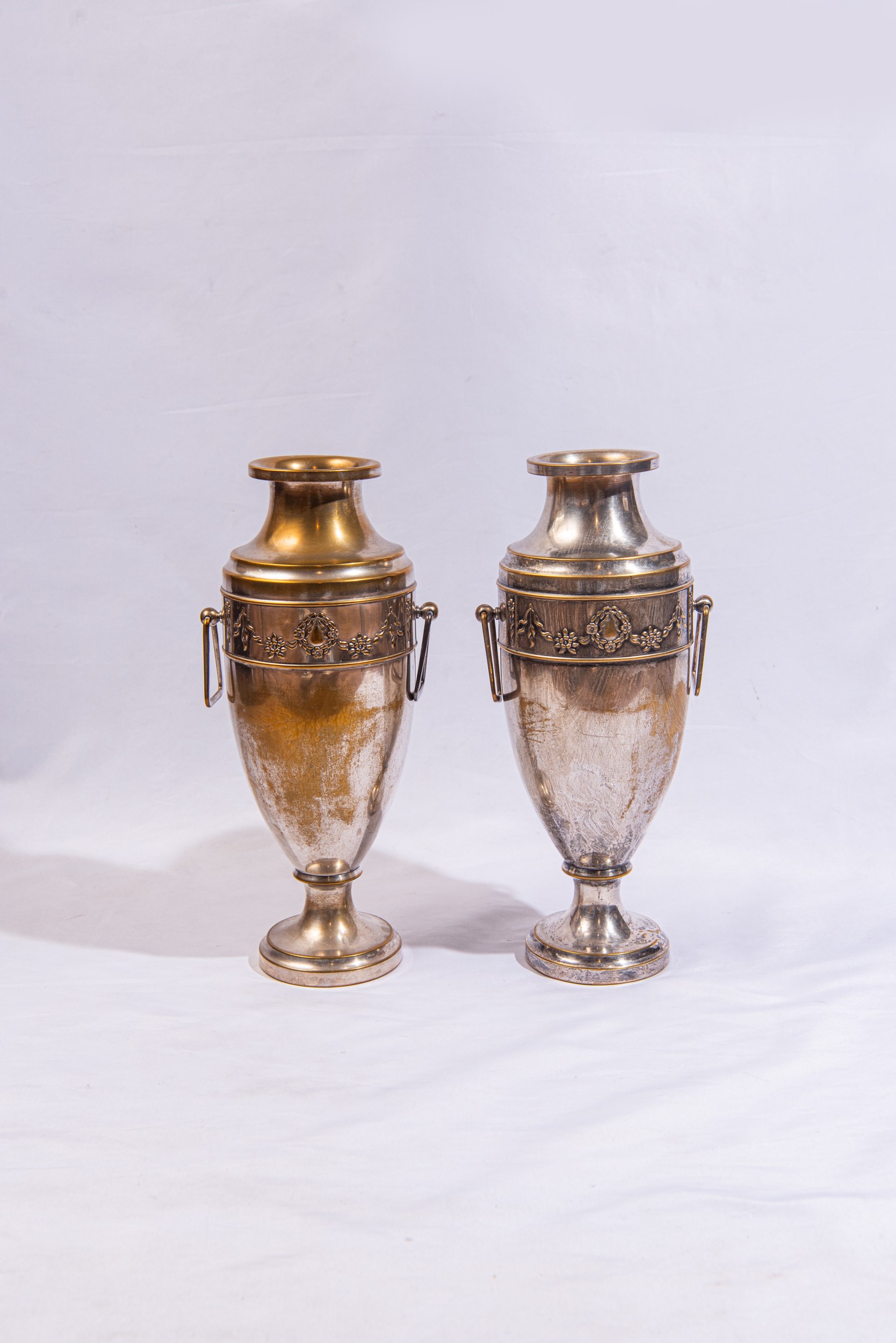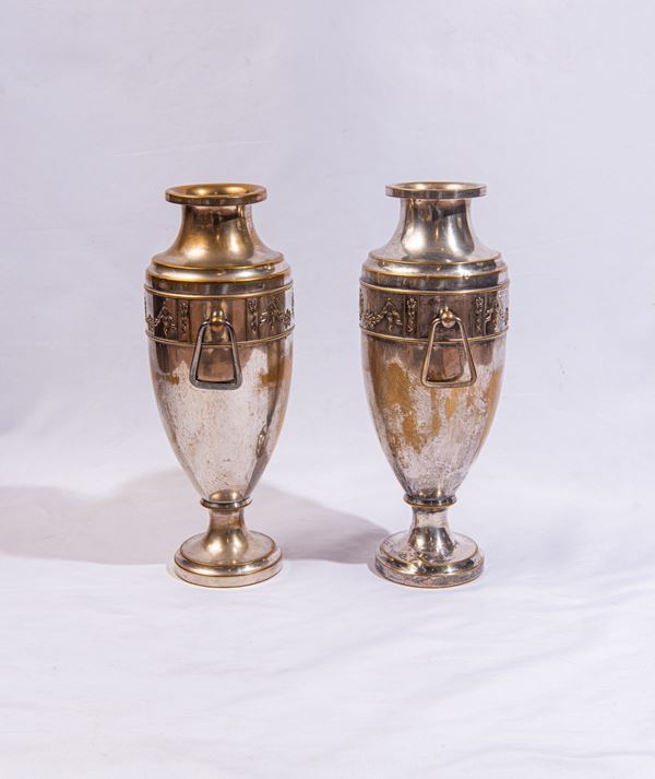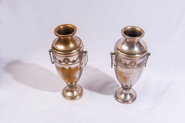 Coppia di vasi liberty in metallo argentato, Inghilterra, fine XIX secolo