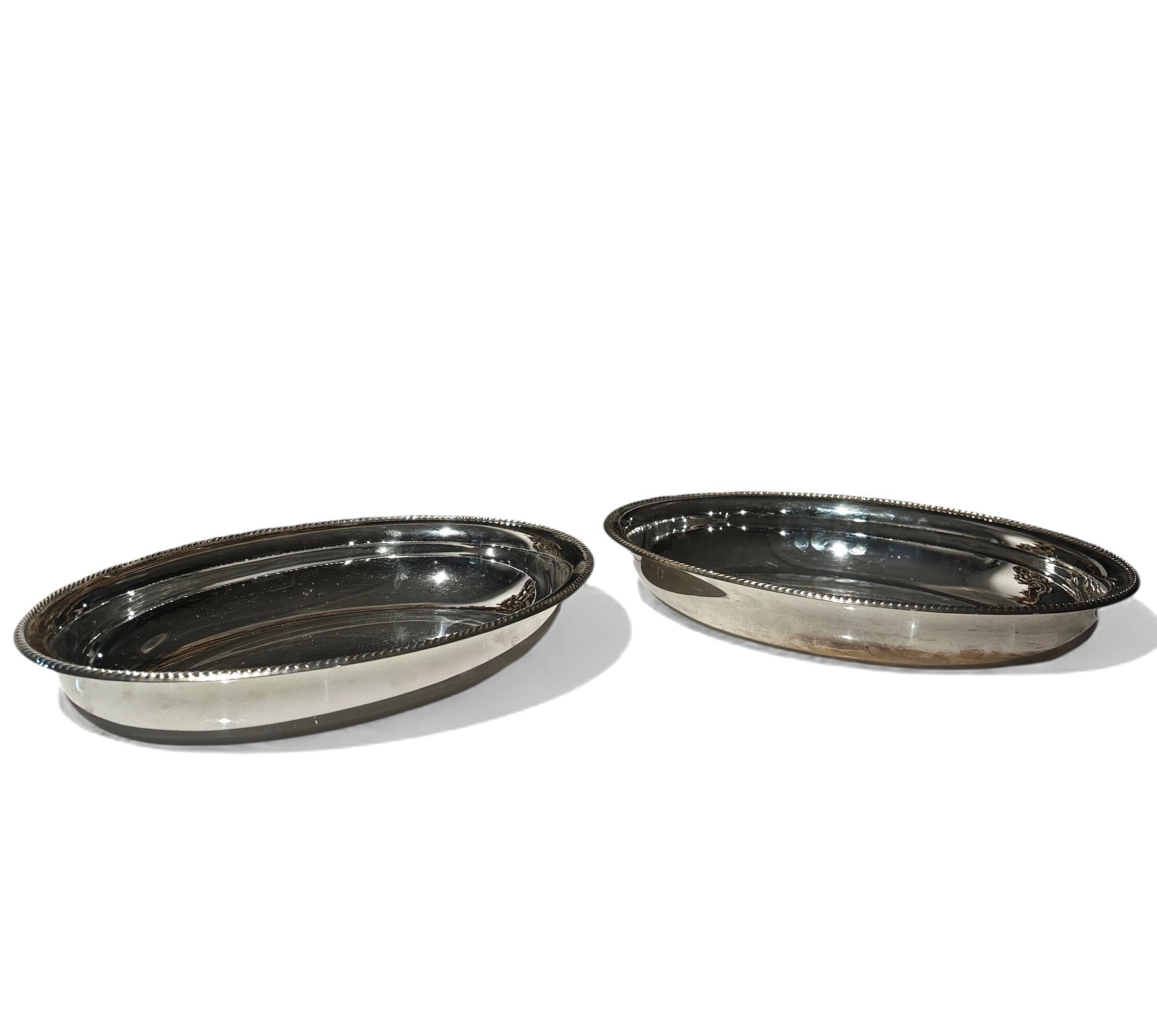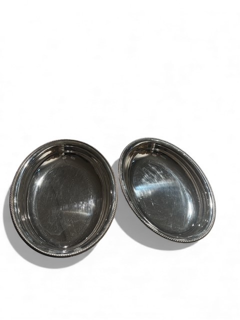 Coppia di vassoi da portata in metallo argentato, Italia, XX secolo