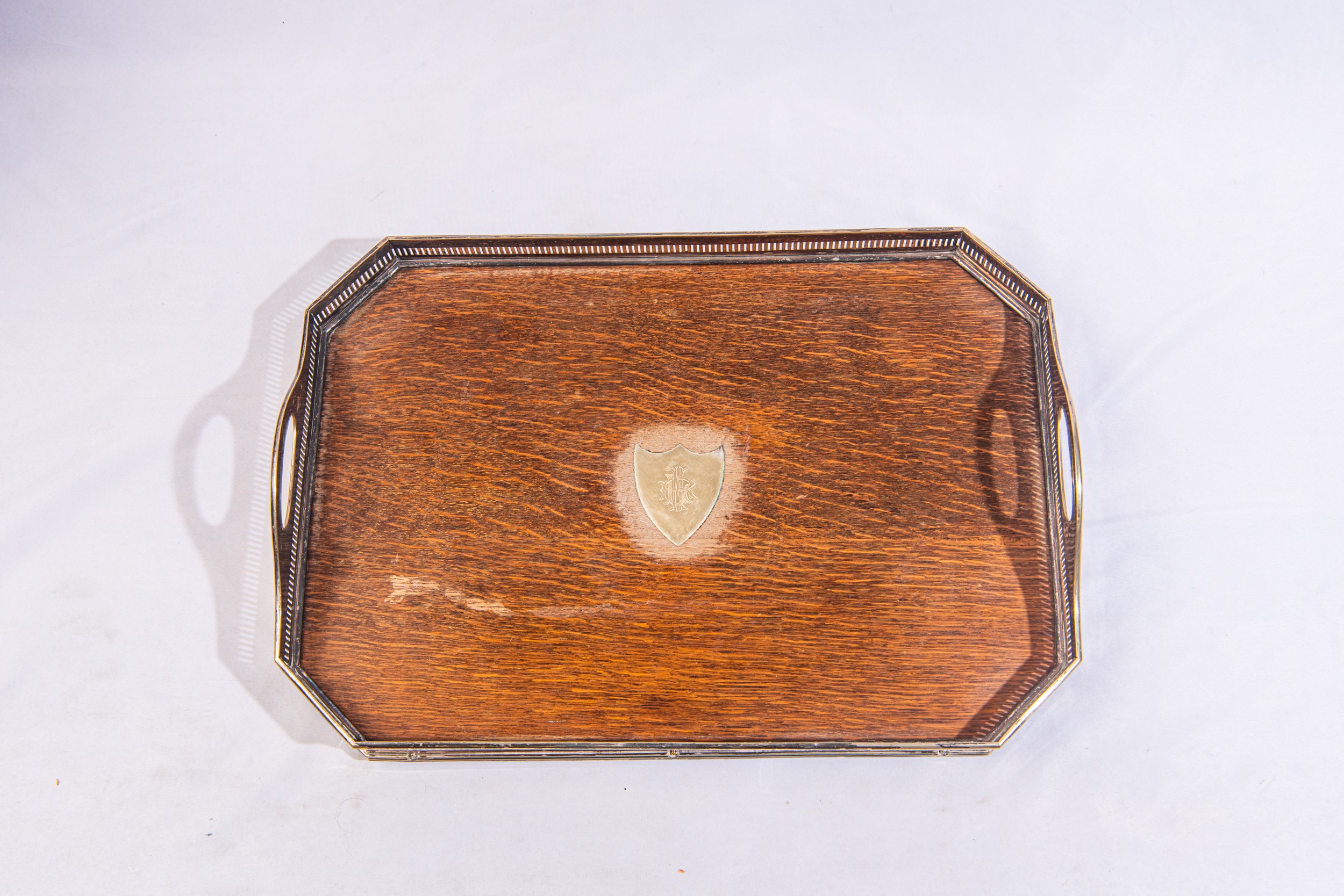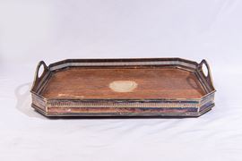 di forma ottagonale e piano in legno di rovere e ringhiera traforata con due manici laterali.