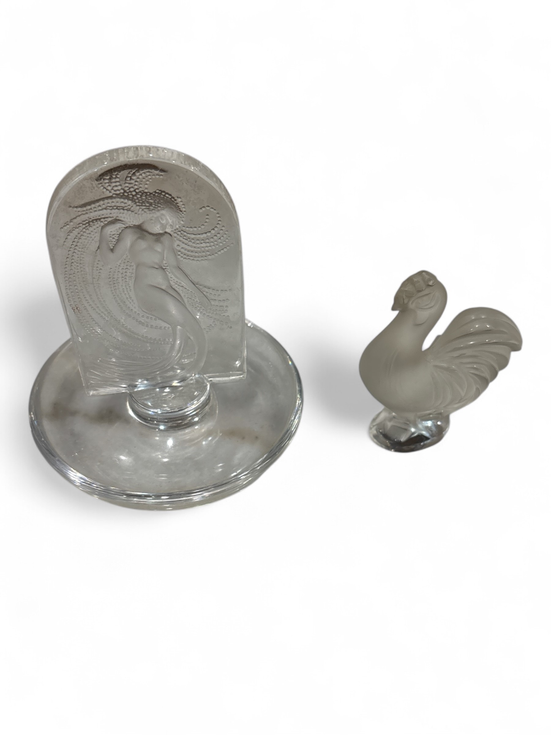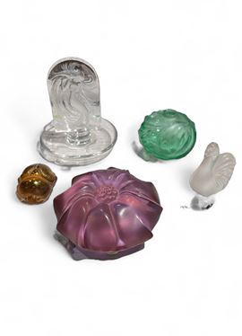 Di cui: un fermacarte; due piccole sculture raffiguranti una gallina e uno scarabeo, un vasetto e una placca con una sirena incisa.