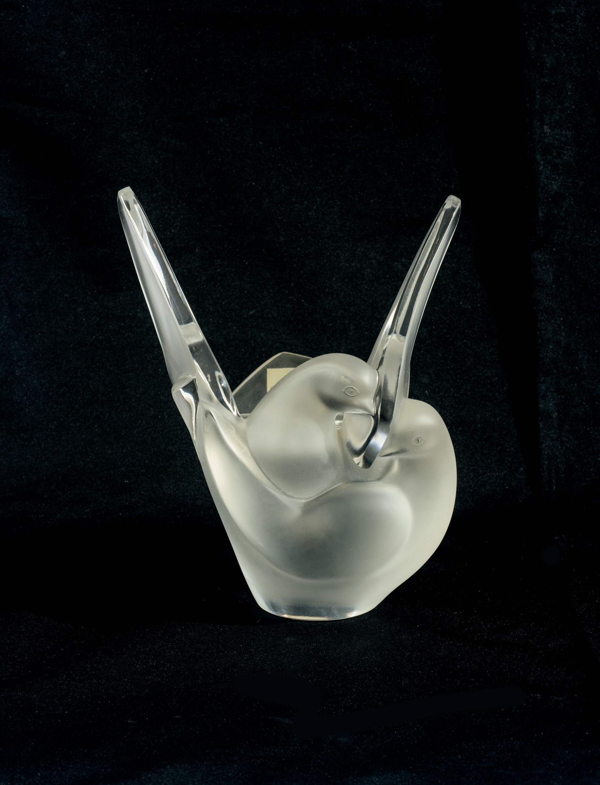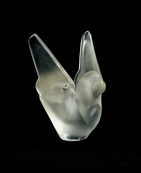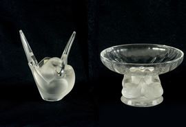 Vaso Lalique mod. "Sylvie", firmato alla base; Piccola alzata mod. 11051 "Noger bowl sparrow", firmata alla base