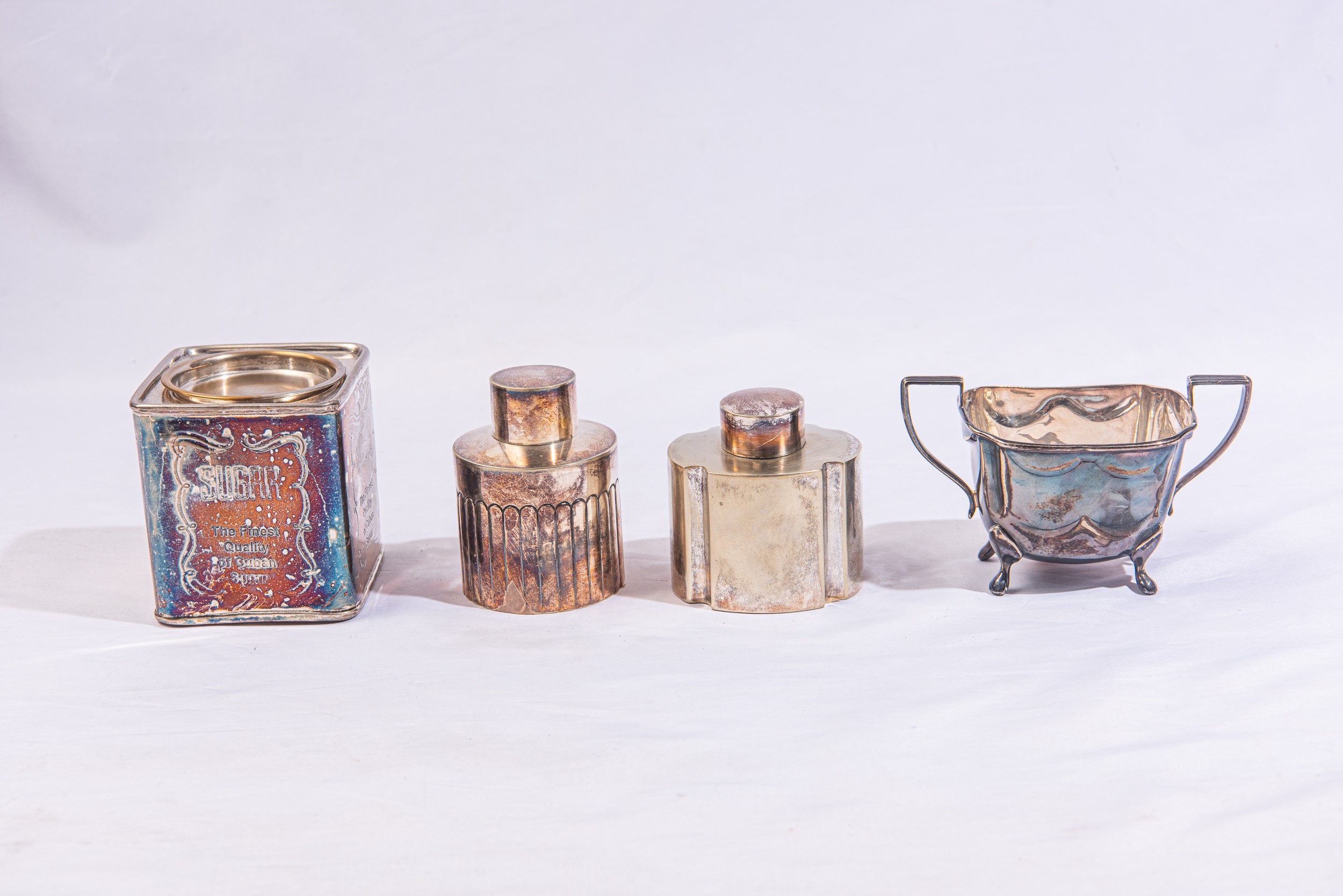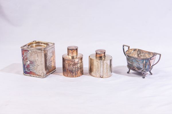 Quattro contenitori in metallo argentato, Fine XIX secolo