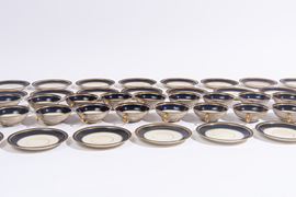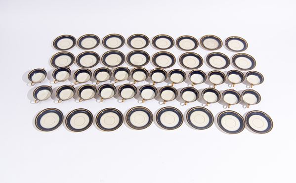 Elfenbein. Il servizio conta 47 pezzi ed è così composto: 23 ciotole (H. 5,5 x D. 17 cm) e 24 piatti. Marchio di produzione al retro.