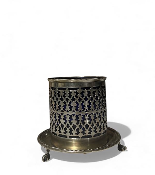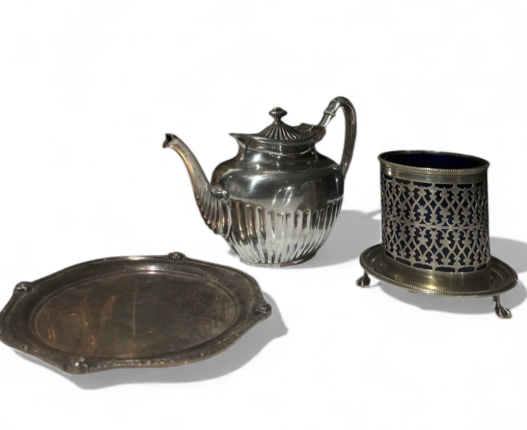 Tre oggetti in metallo argentato