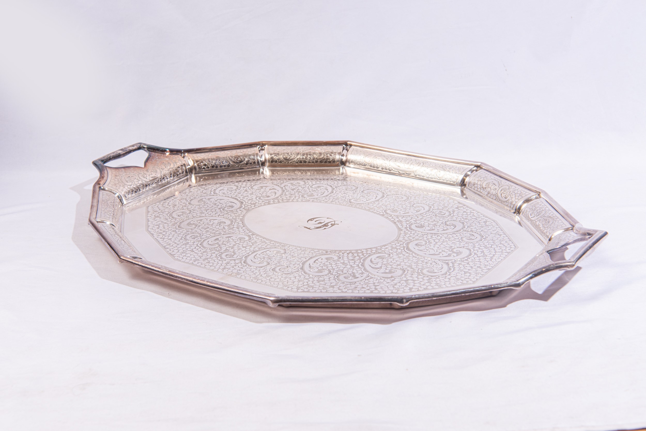 Vassoio in metallo argentato, metà XX secolo