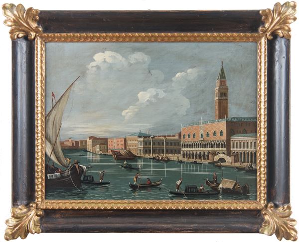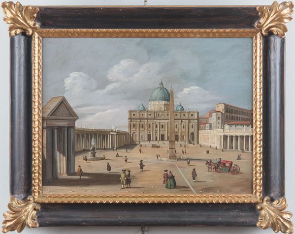 veduta di piazza San Pietro, e veduta del canal grande. Entro cornici in legno dorato ed ebanizzato del XX secolo