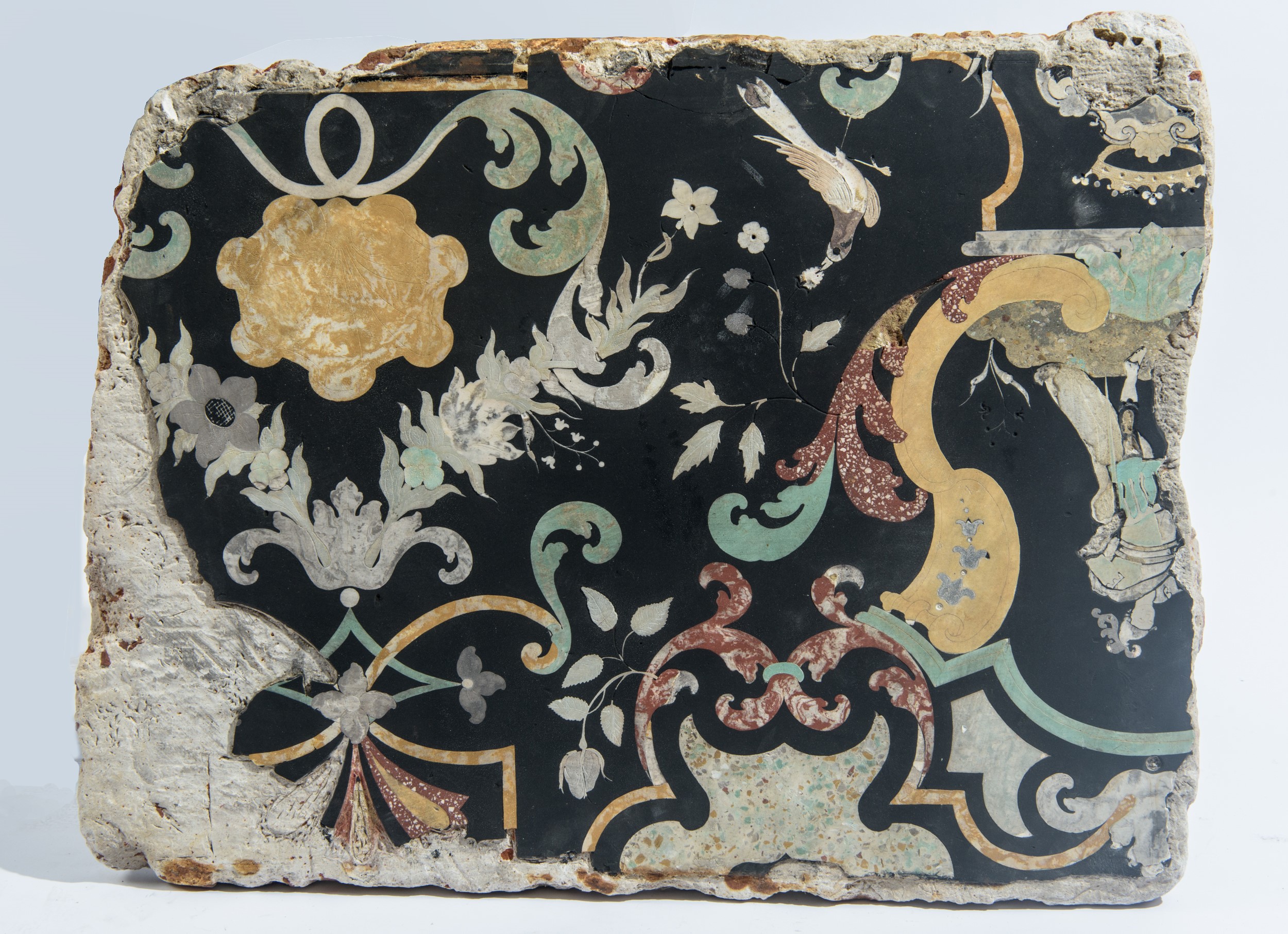 Frammento di ripiano in scaiola, Carpi, fine XVII - inizio del XVIII secolo