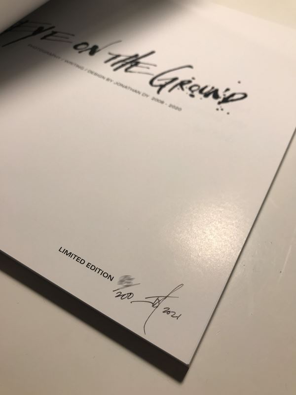 Limited Edition autographed book "Eye on the Ground" Ed.90/200; 130 pages; source: directly from the artist and Image in Progress; condition: new.