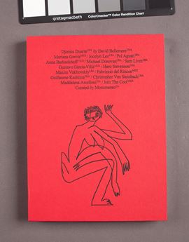 Red hardcover with foil accents; premium red cotton liner; 17″ x 22″ uncoated poster featuring Shaughnessy Brown photographed by Mariana García; metallic postcard (good condition, not photographed).