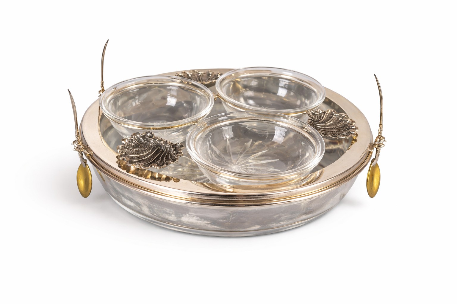 Belfiore - Portacaviale con scatola in metallo argentato e vetro, XX secolo