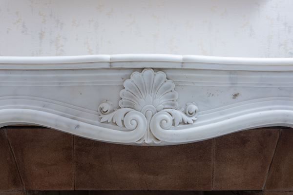 di linea mossa con fronte sagomato e cartella centrale a conchiglia, montanti scanalati e riserve sagomate.