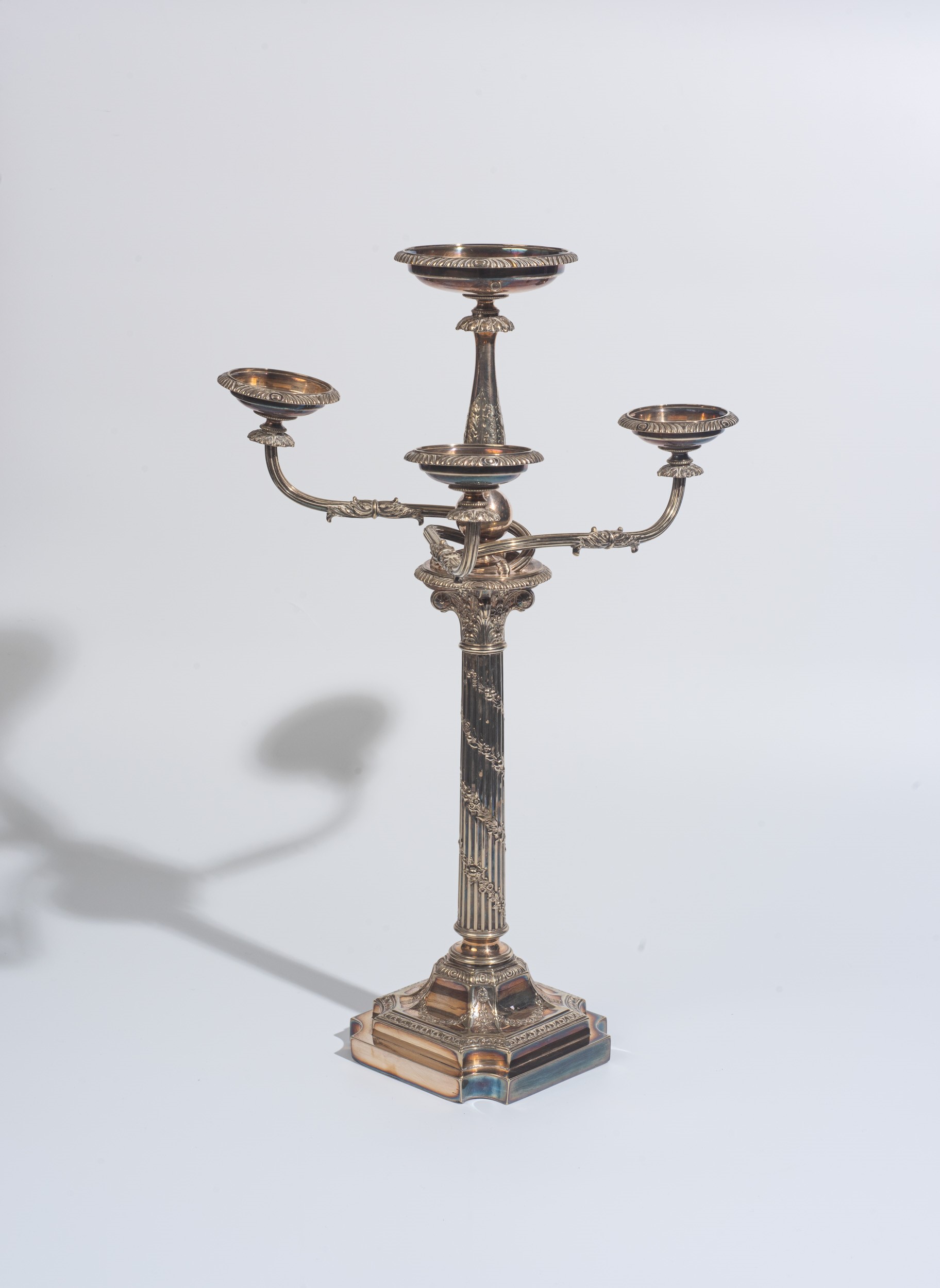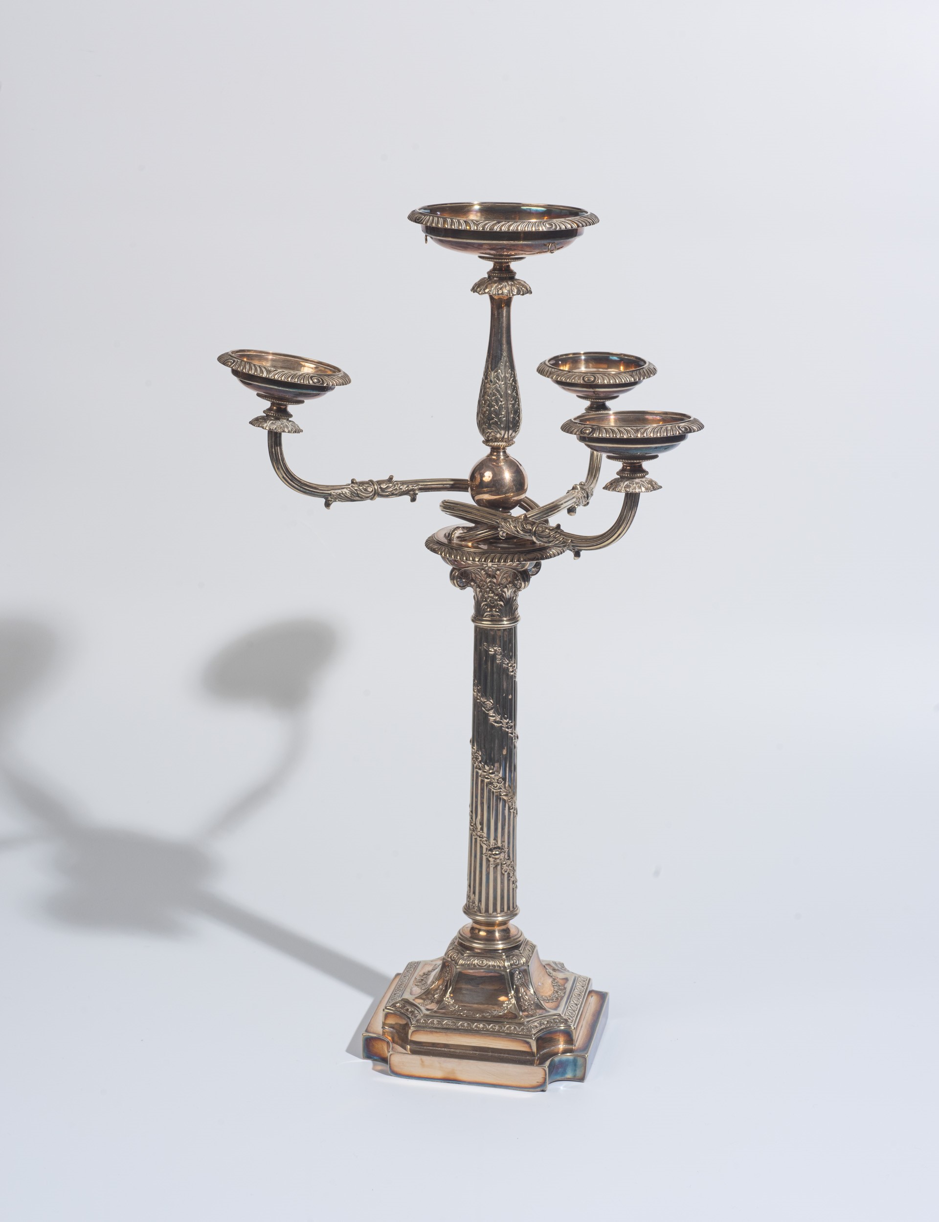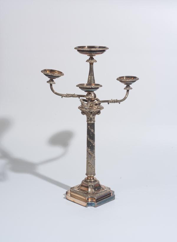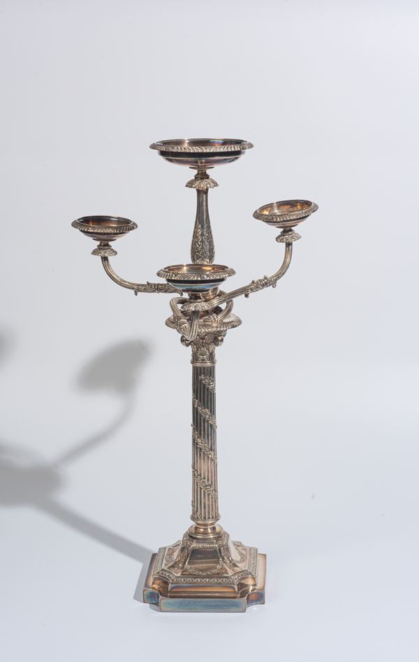 Candeliere in metallo argentato, Inghilterra, inizio XX secolo