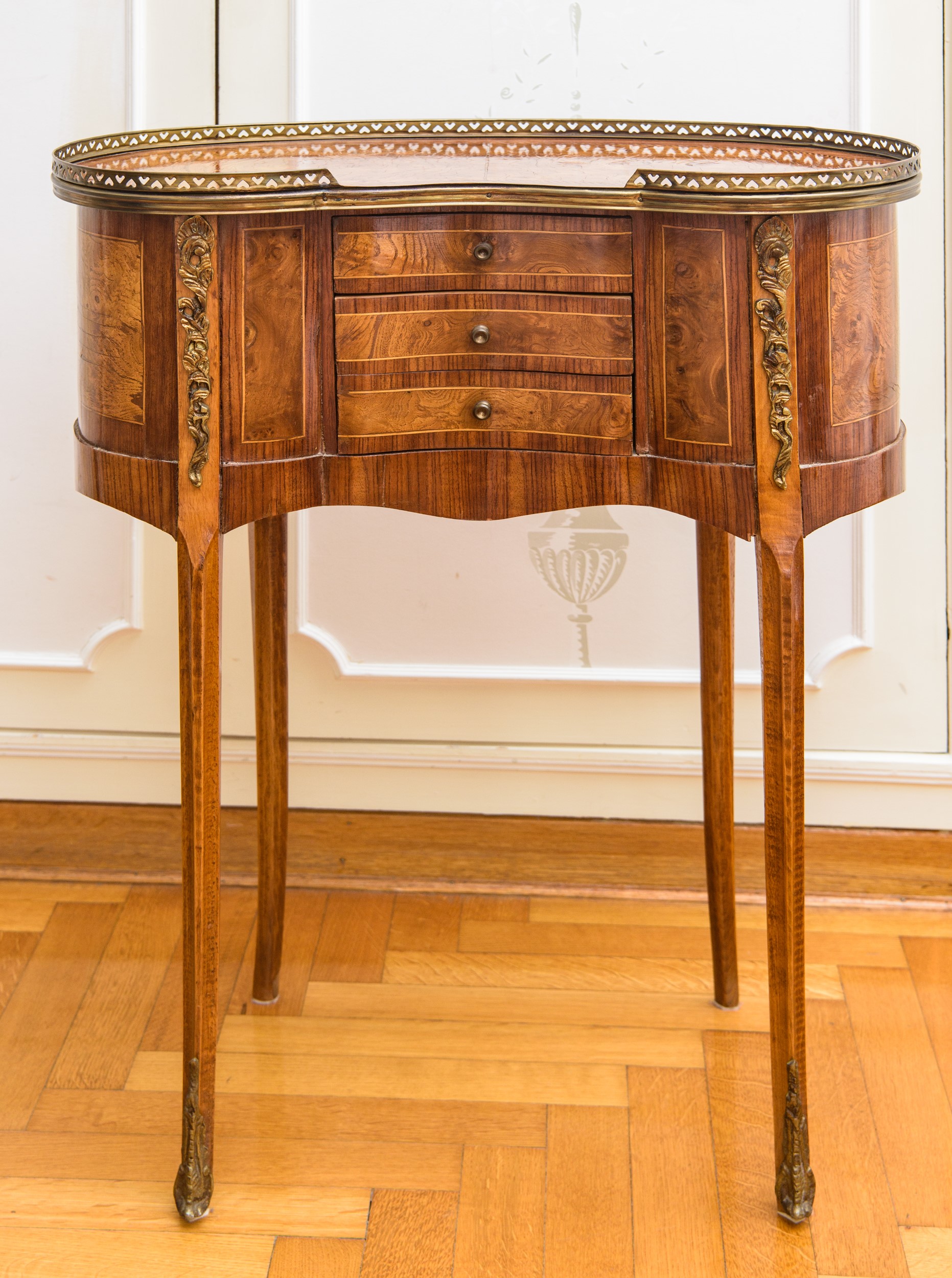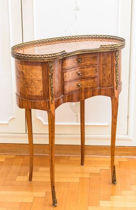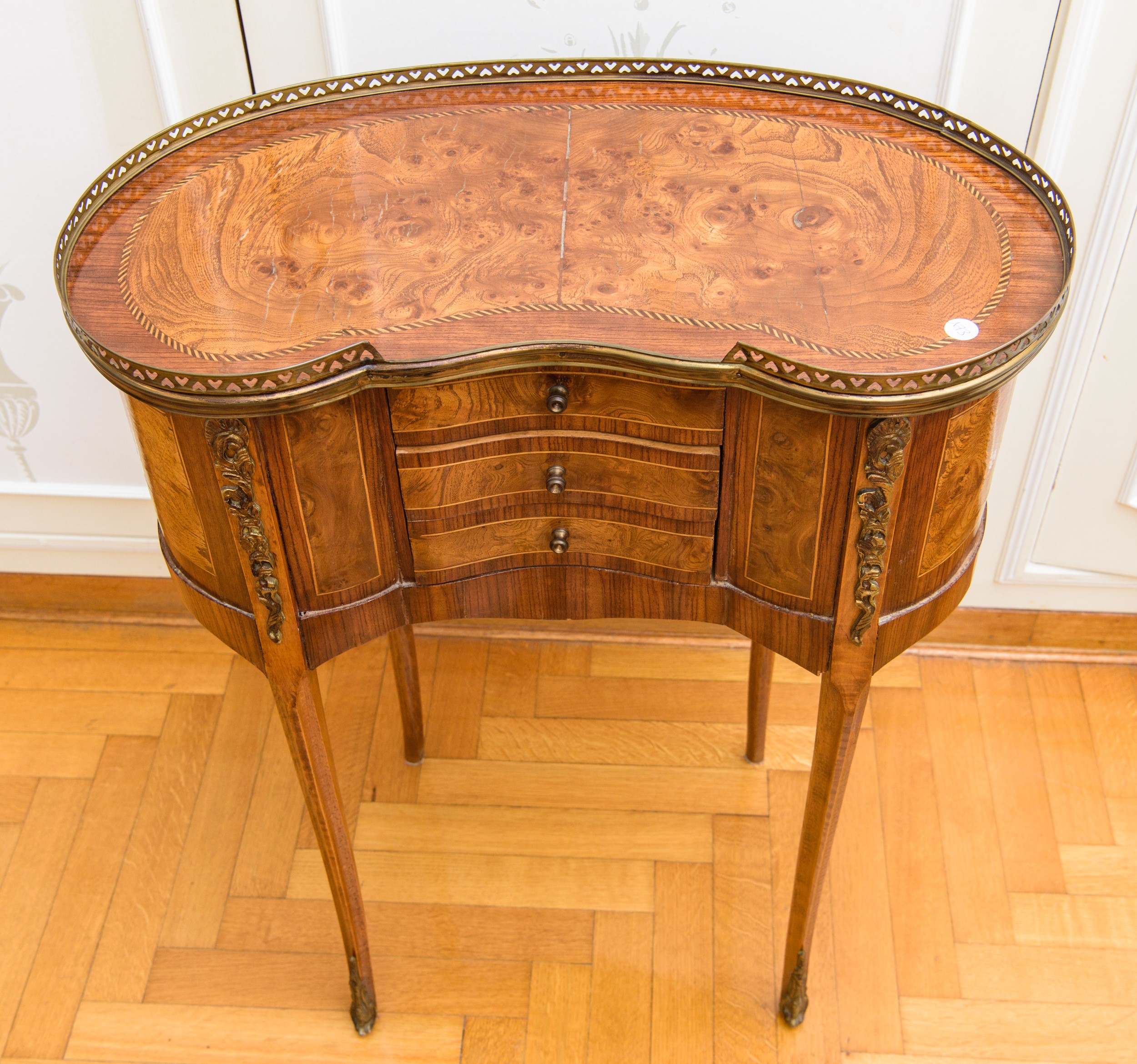 Comodino a fagiolo con intarsi e bronzi, Fine XIX - Inizio XX secolo