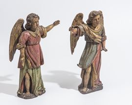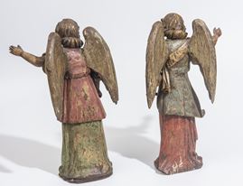 Coppia di angeli in legno scolpito e policromo, Italia, fine XIX - XX secolo