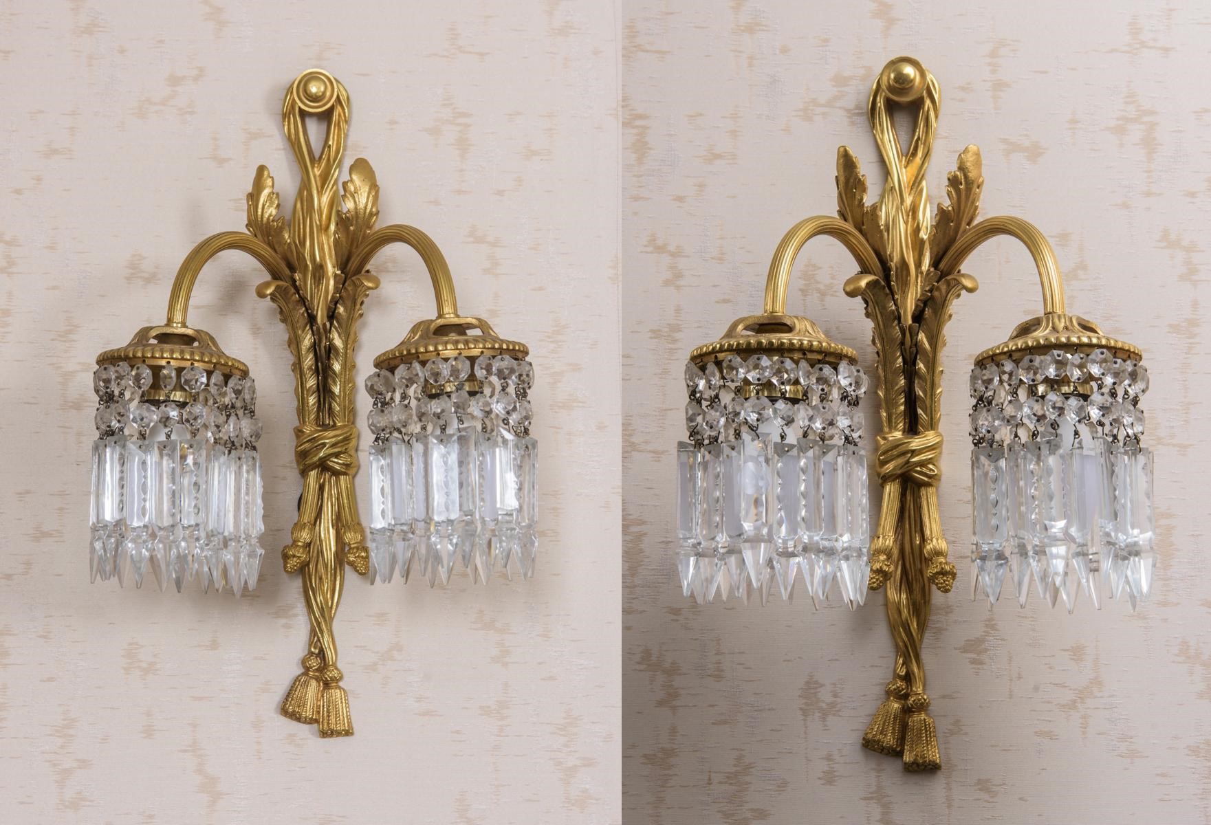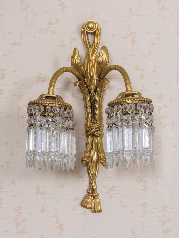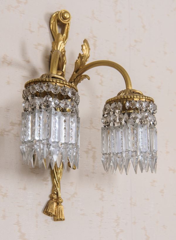 Coppia di appliques in bronzo dorato e cristallo, Francia, fine XIX - inizio XX secolo