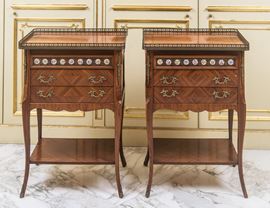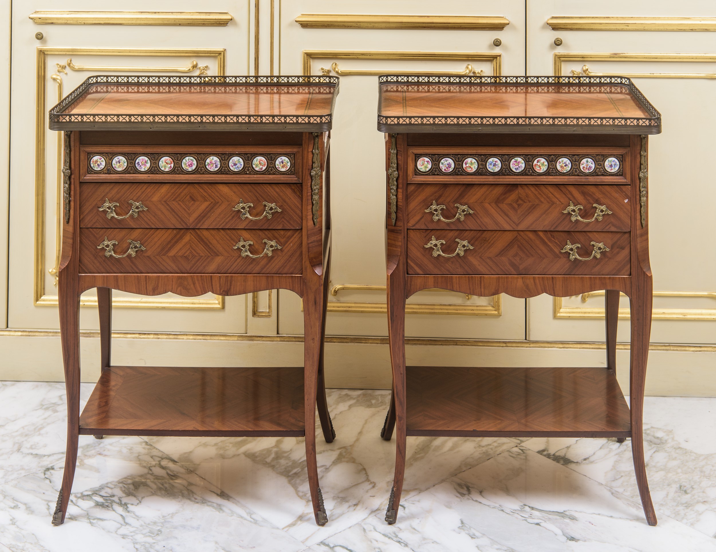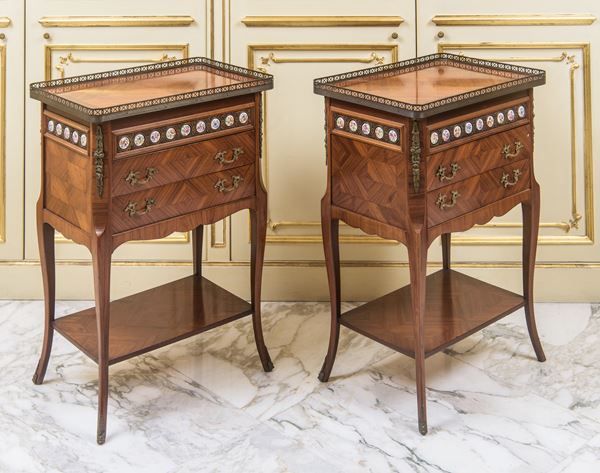 Coppia di comodini con placche di porcellana e bronzi, Italia, XX secolo