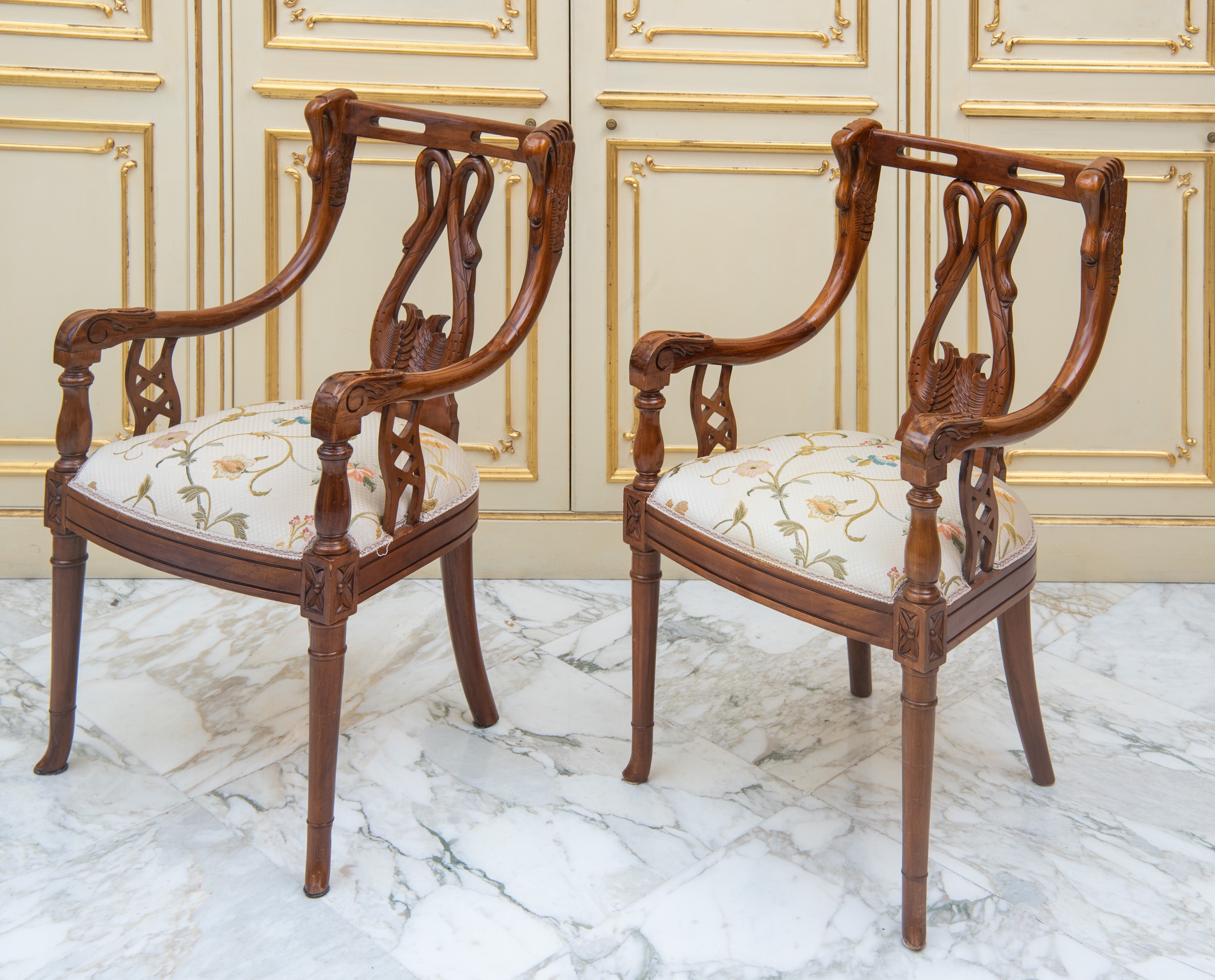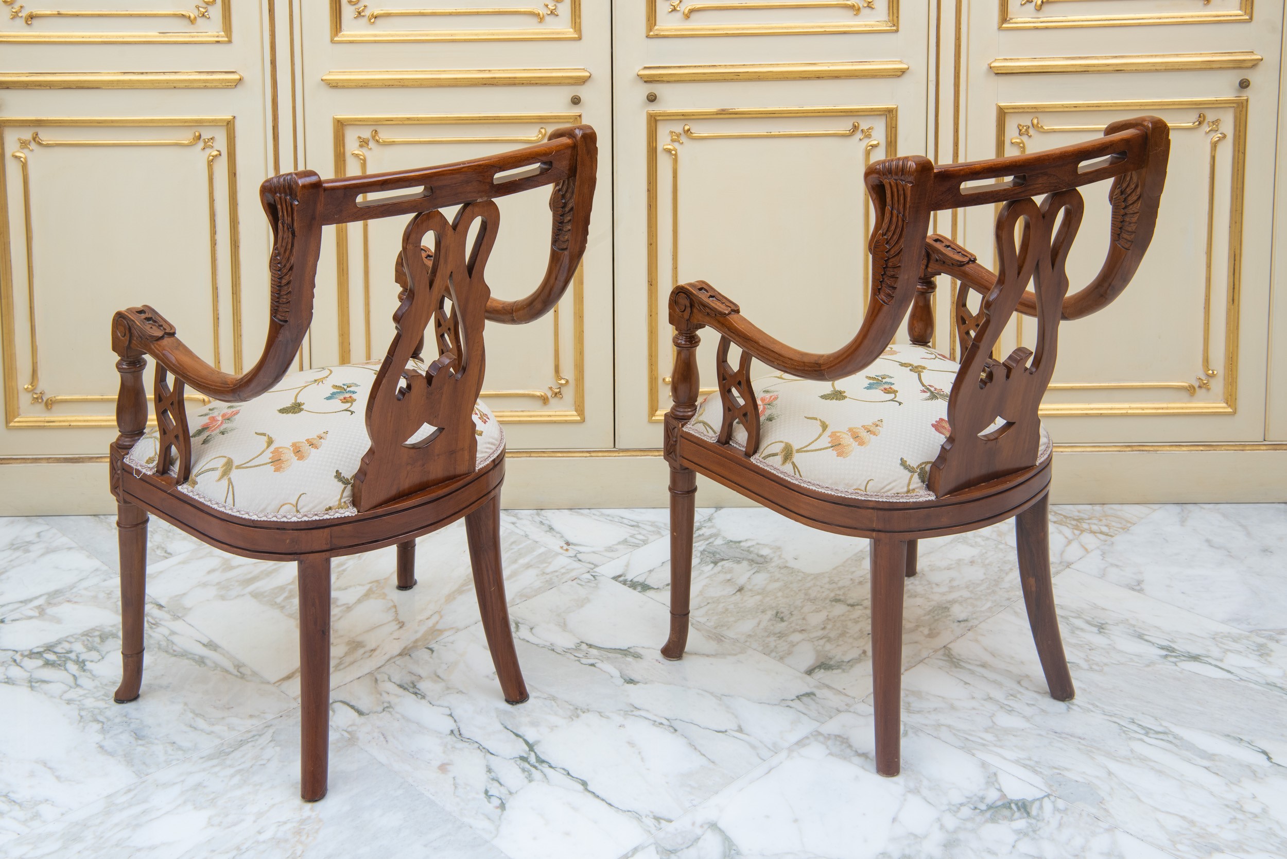 Coppia di poltroncine in stile Impero con schienale a lira, Italia, inizio XX secolo