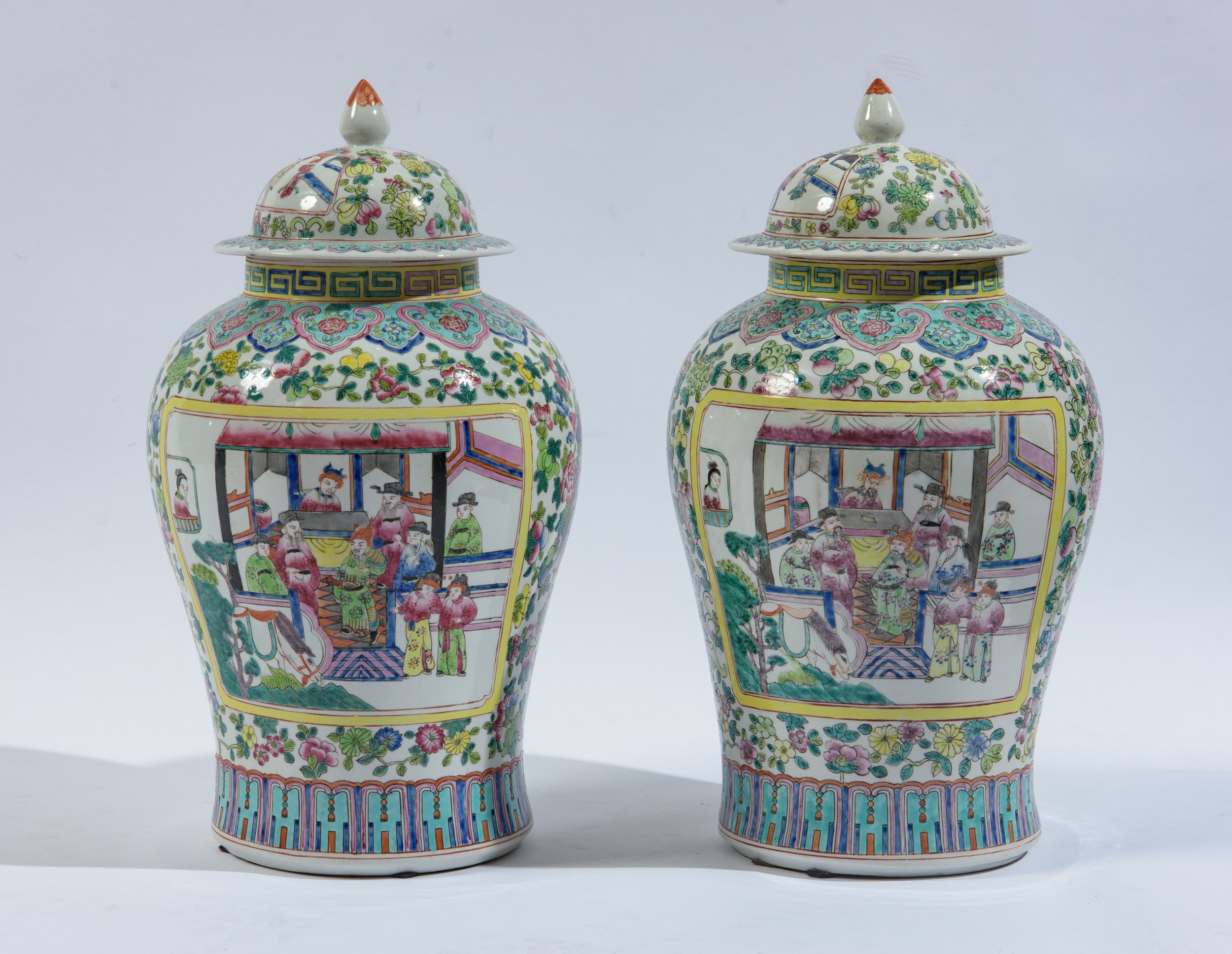 Coppia di potiches - Famiglia Rosa, Cina, seconda metà XX secolo