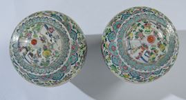 in porcellana policroma decorata con scene di vita quotidiana entro riserve e motivi floreali