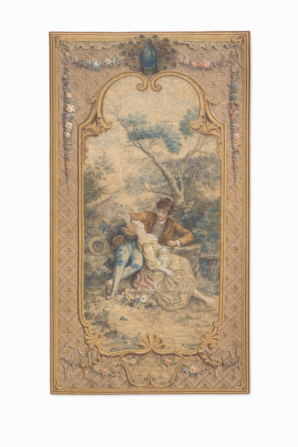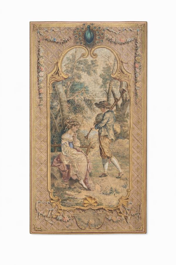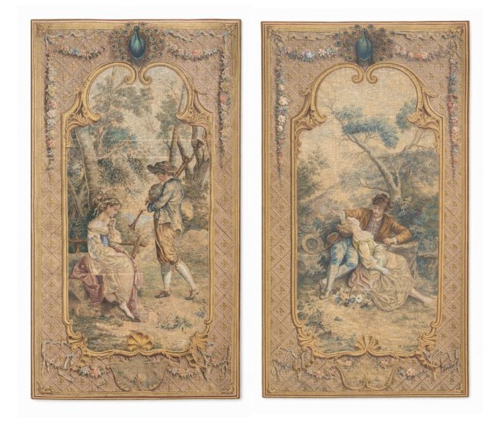 Raffiguranti scene galanti racchiuse da cornici ornamentali a motivi floreali.