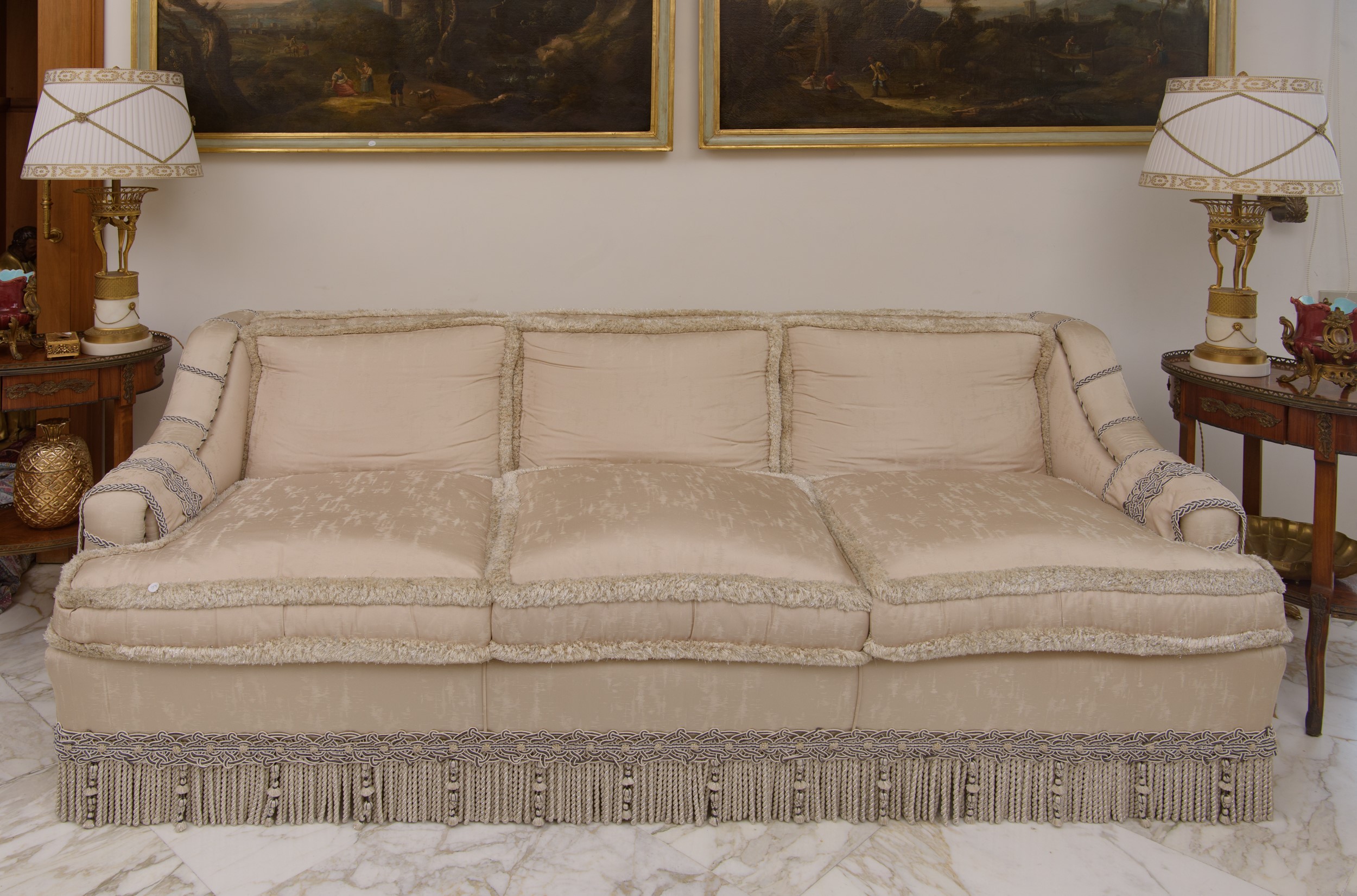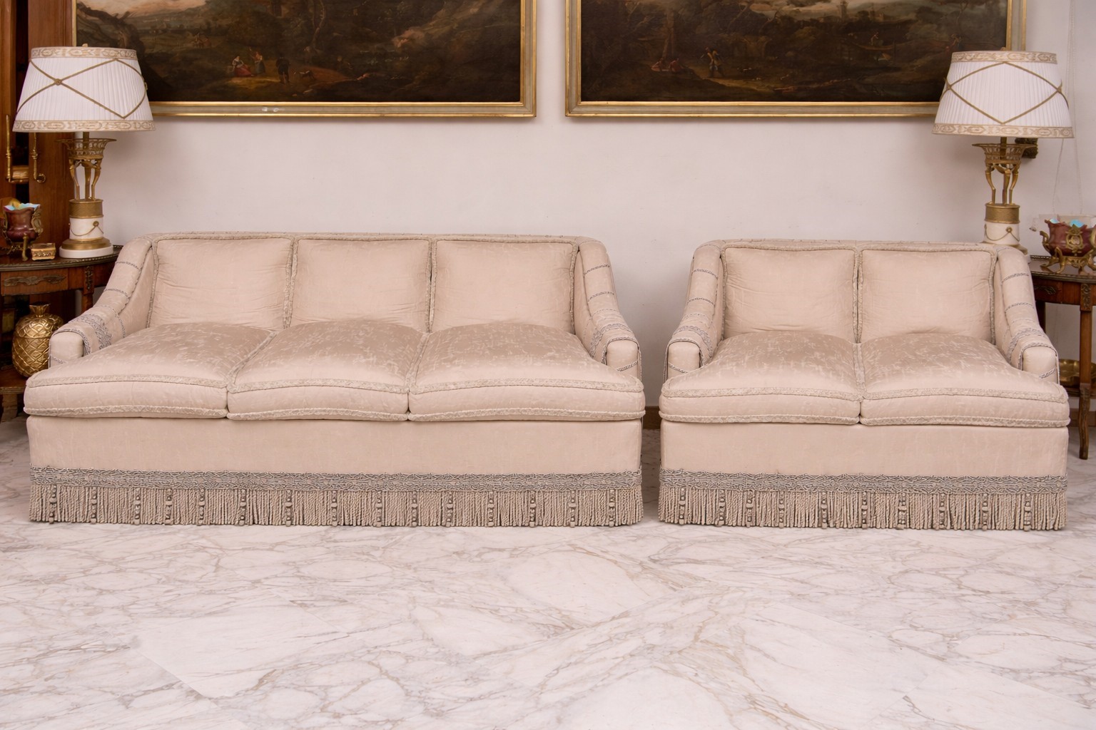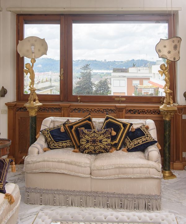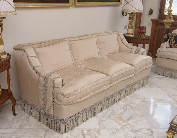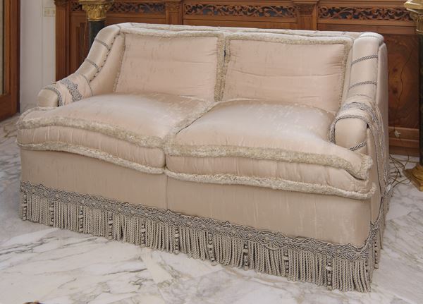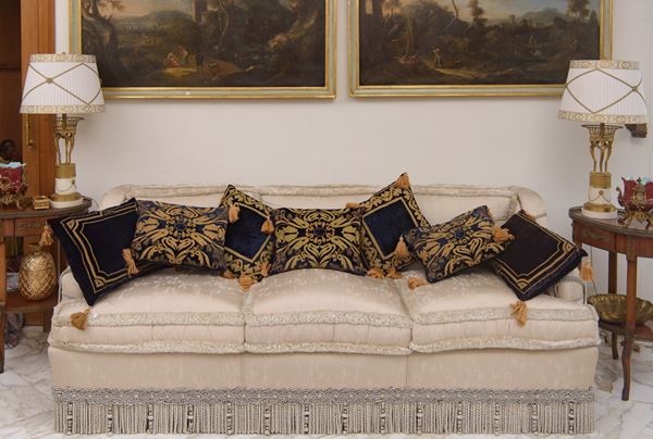 Due divani in seta chiara, Italia, Seconda metà del XX secolo