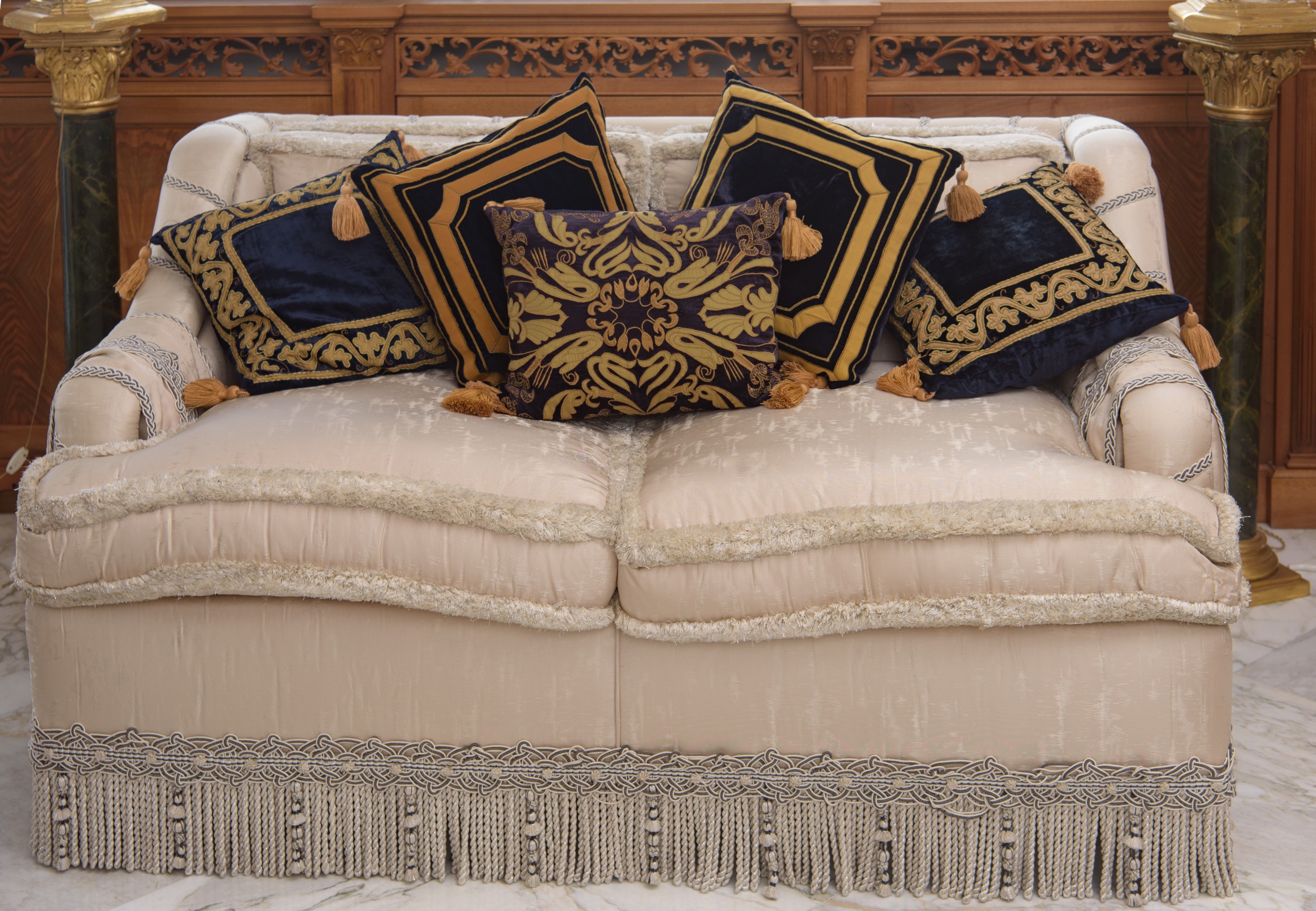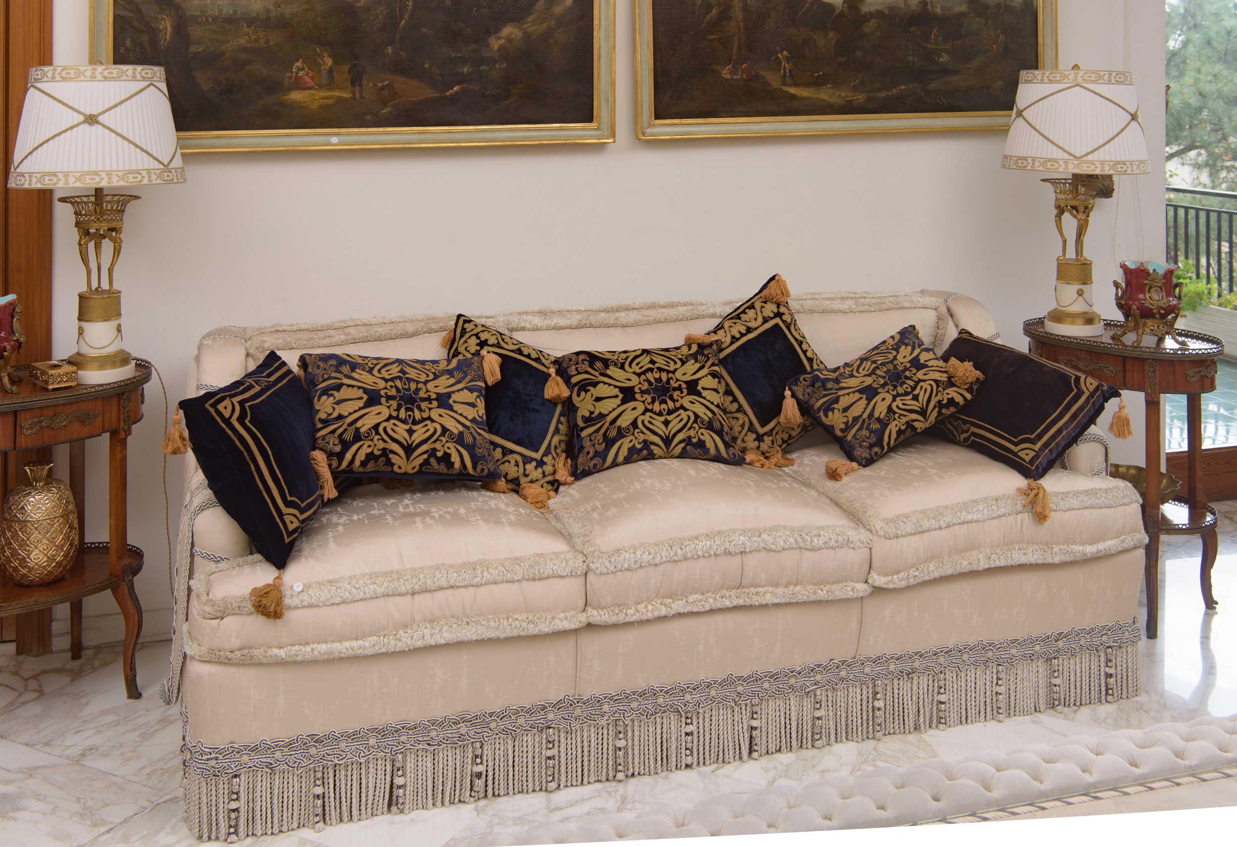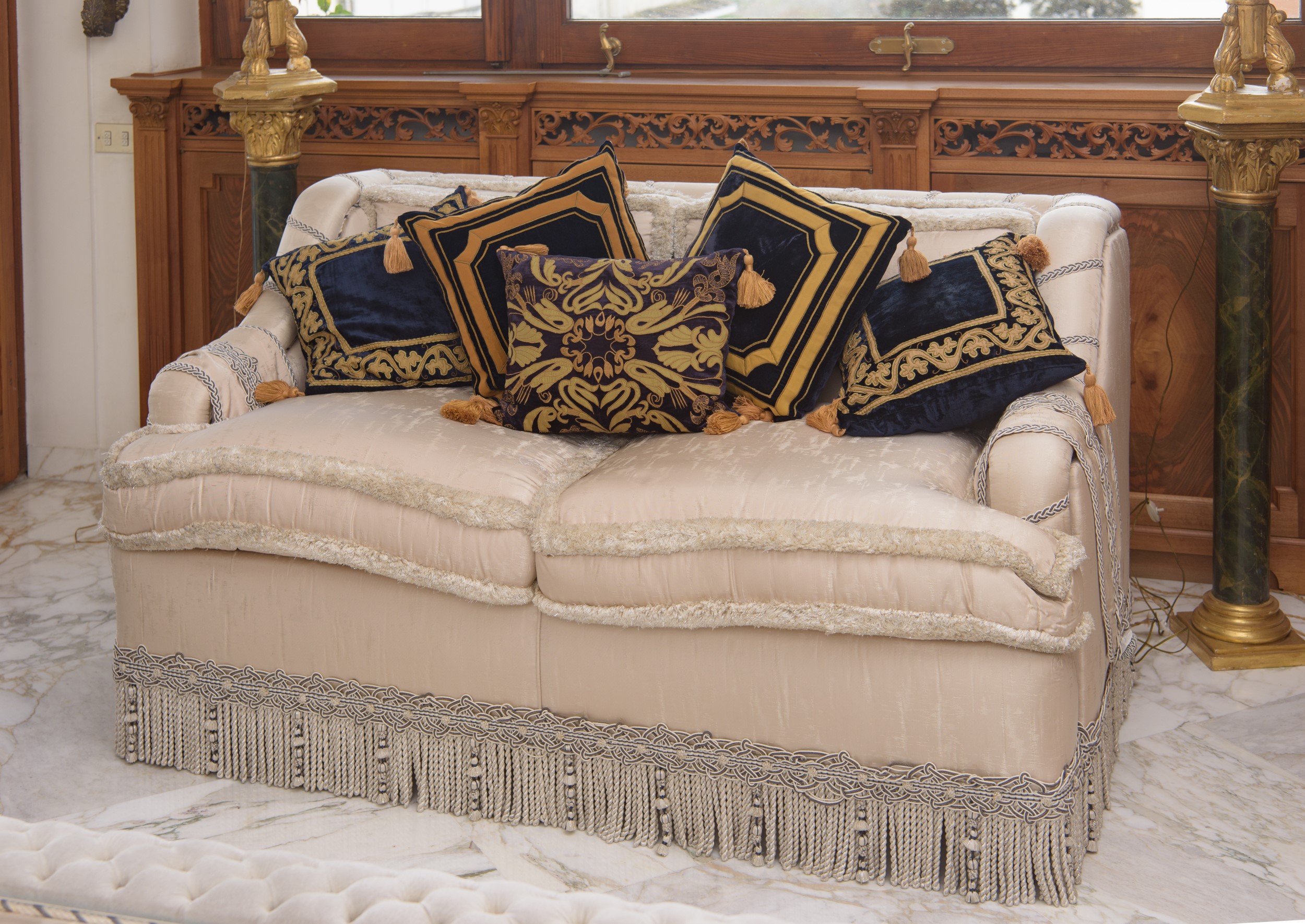 Due divani in seta chiara, Italia, Seconda metà del XX secolo