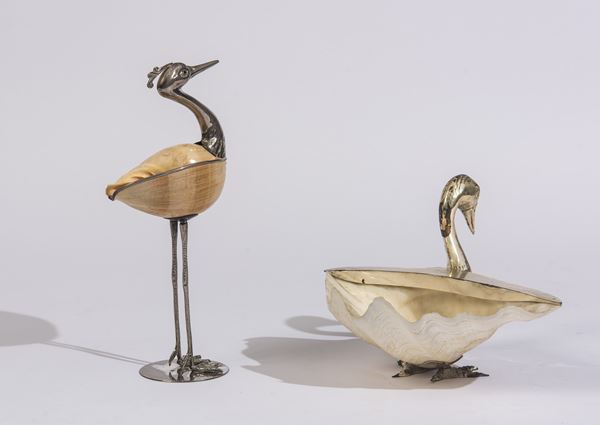 Gabriella Binazzi - Due sculture in conchiglia e metallo argentato