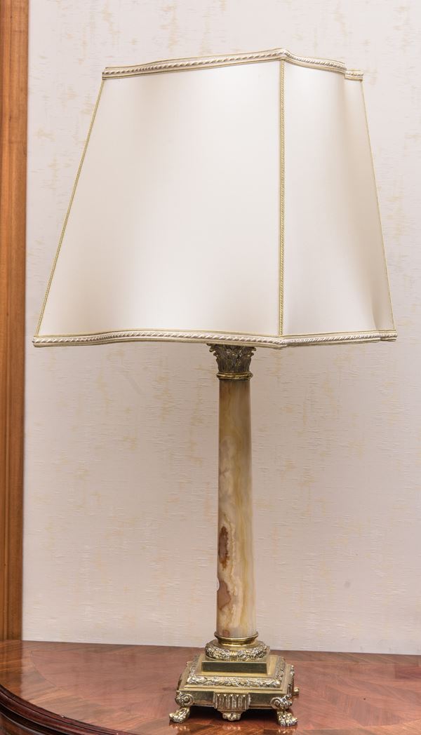Lampada in onice e bronzo, XX secolo