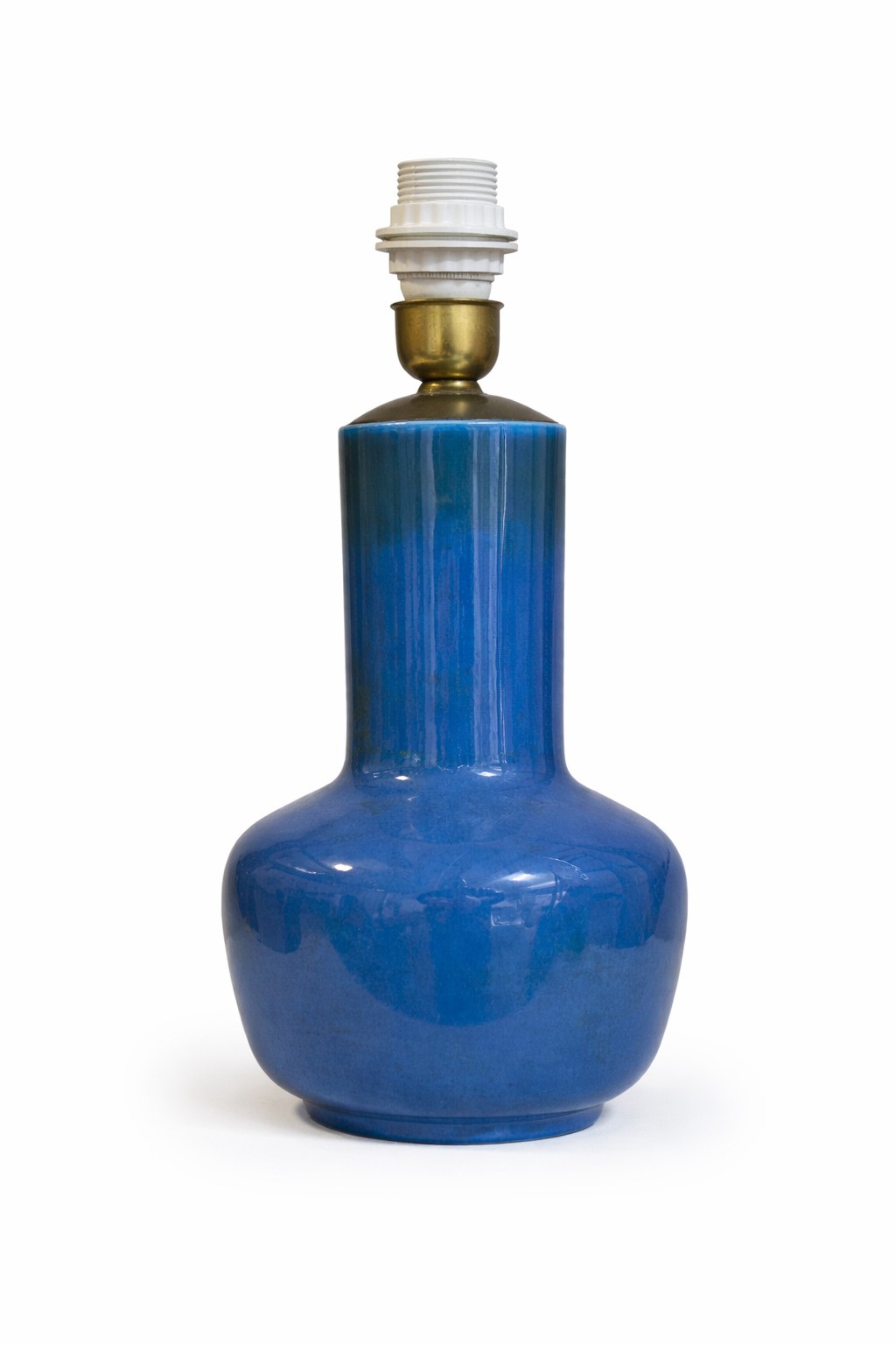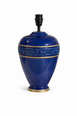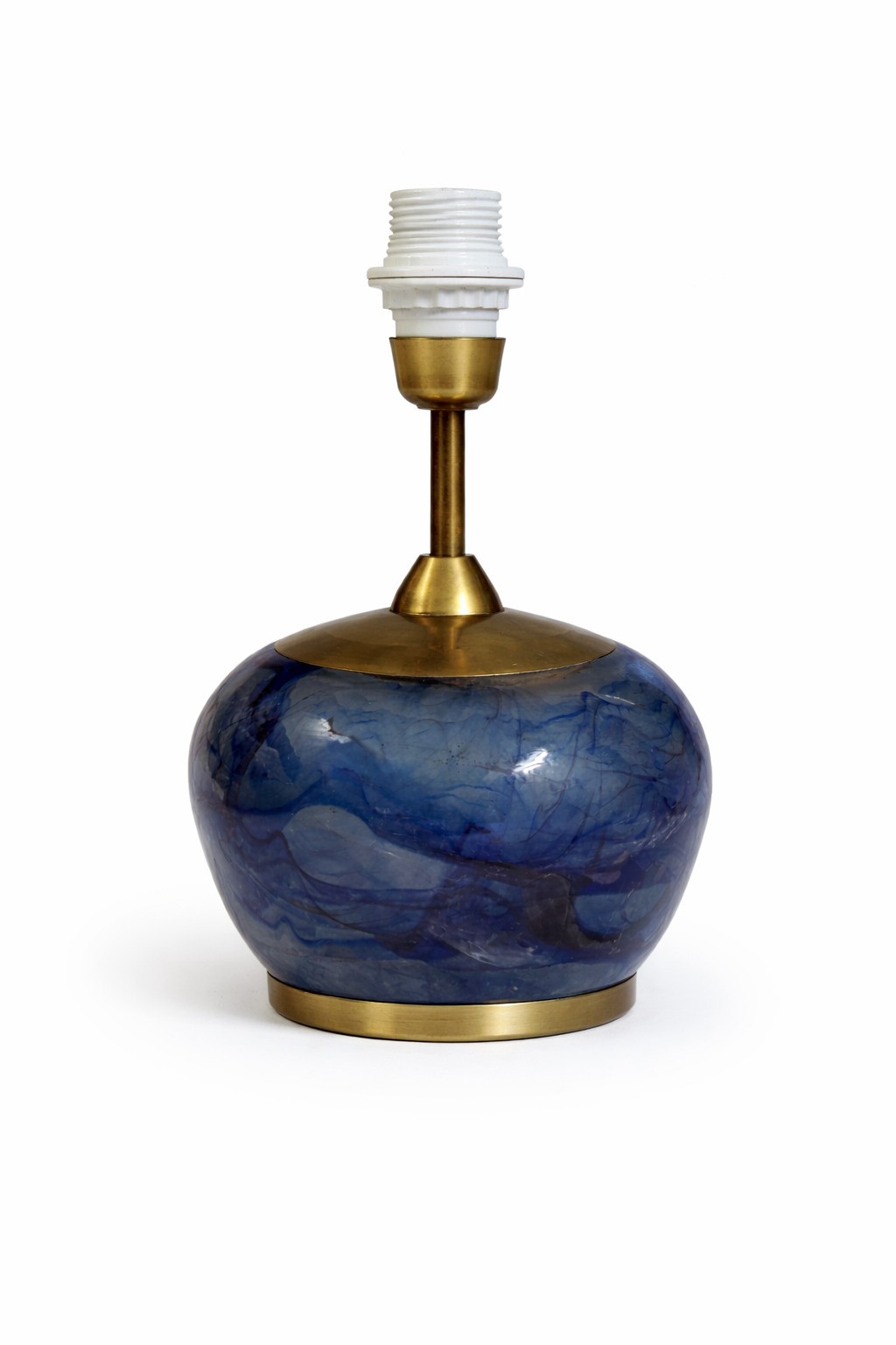 Due lampade Tupini di colore blu, con base in legno (h. 50 cm, 2 lampade (h. 27 x 20 cm).