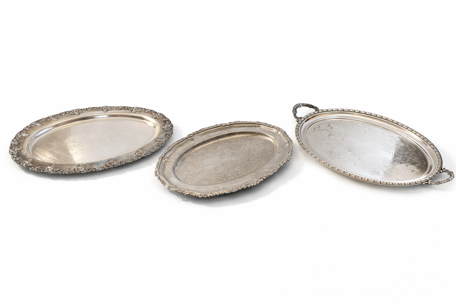 Lotto di tre vassoi in metallo argentato, XX secolo