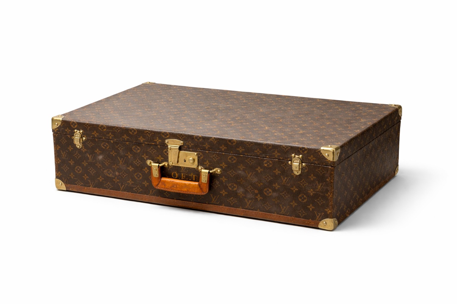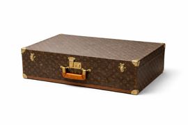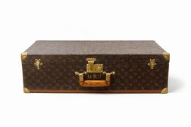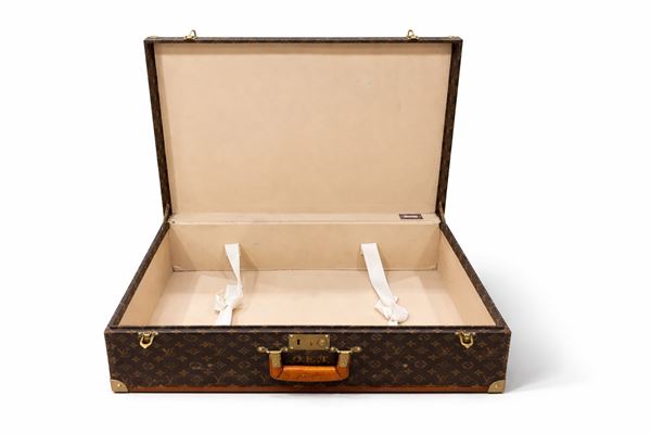 Tela monogramma, dettagli in ottone dorato, con nastri interni. Numero di serie: 874443. Segni di usura.
