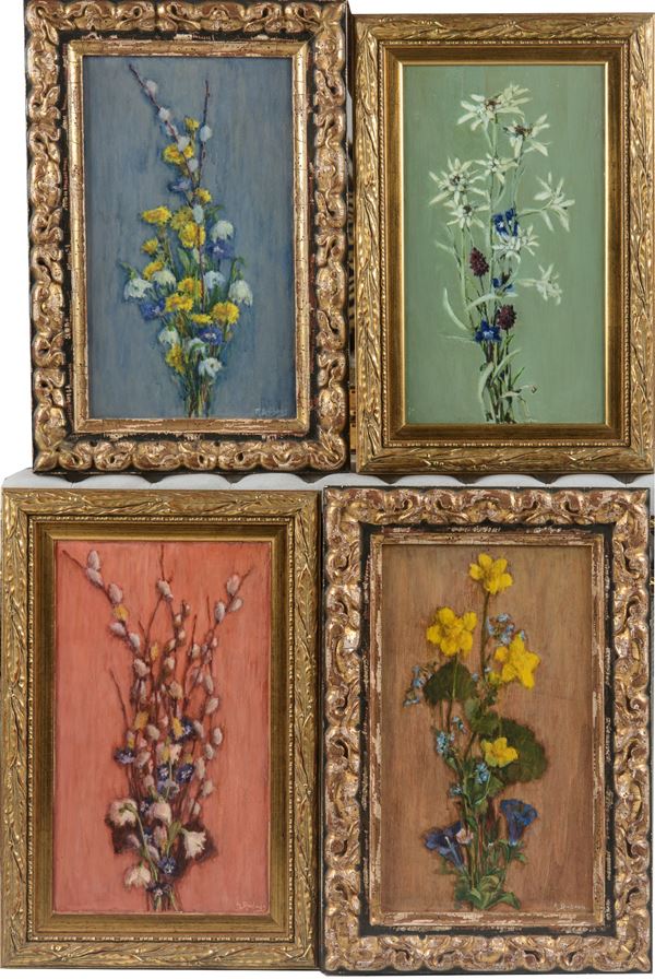 Otto dipinti raffiguranti fiori