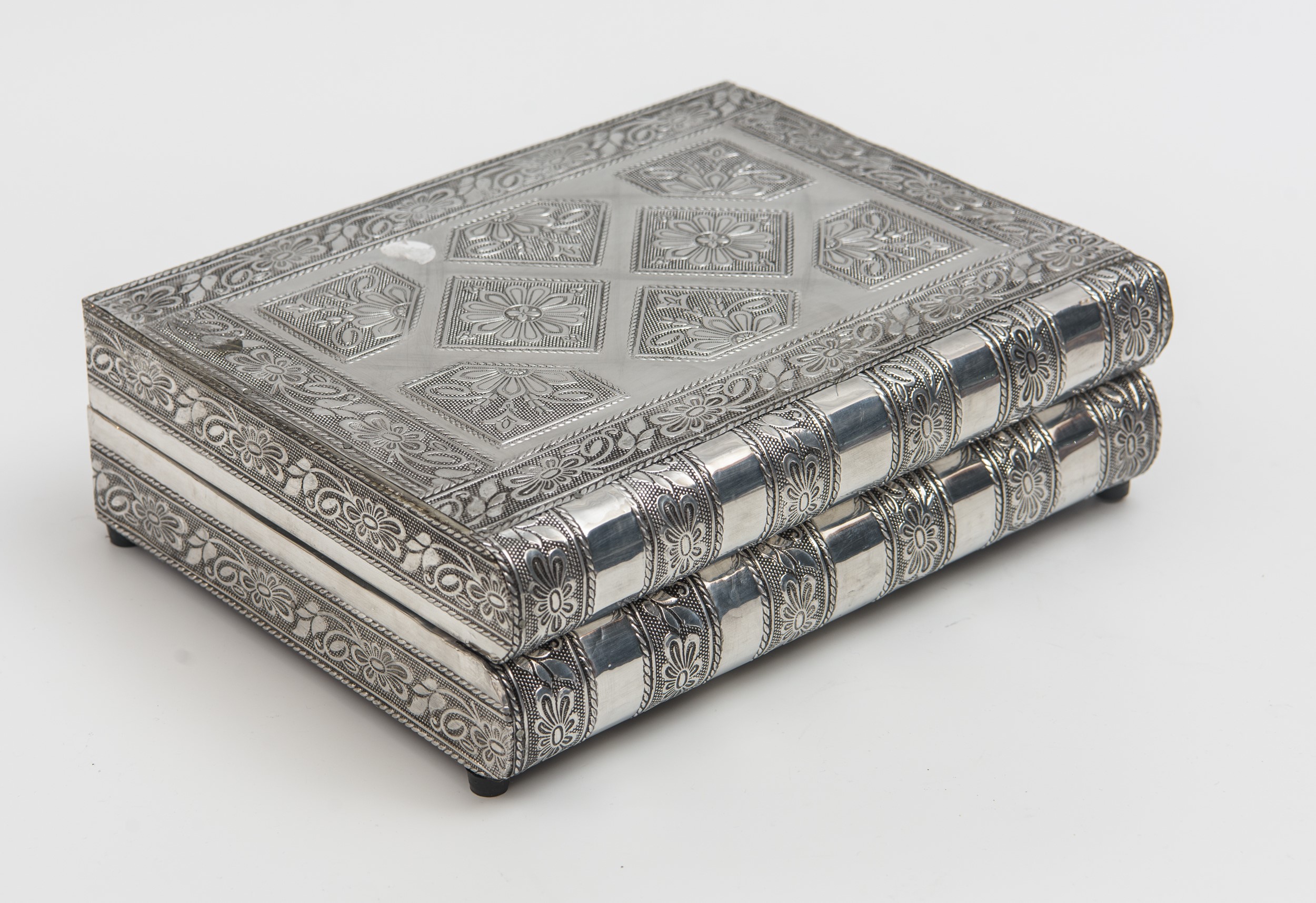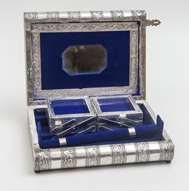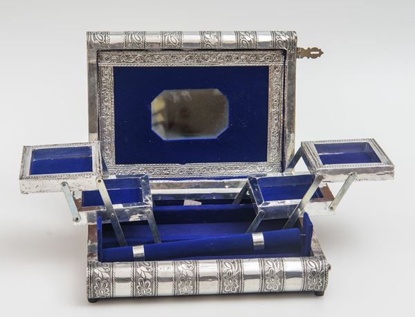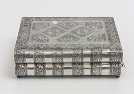 Scatola portagioie a libro, in argento, XX secolo